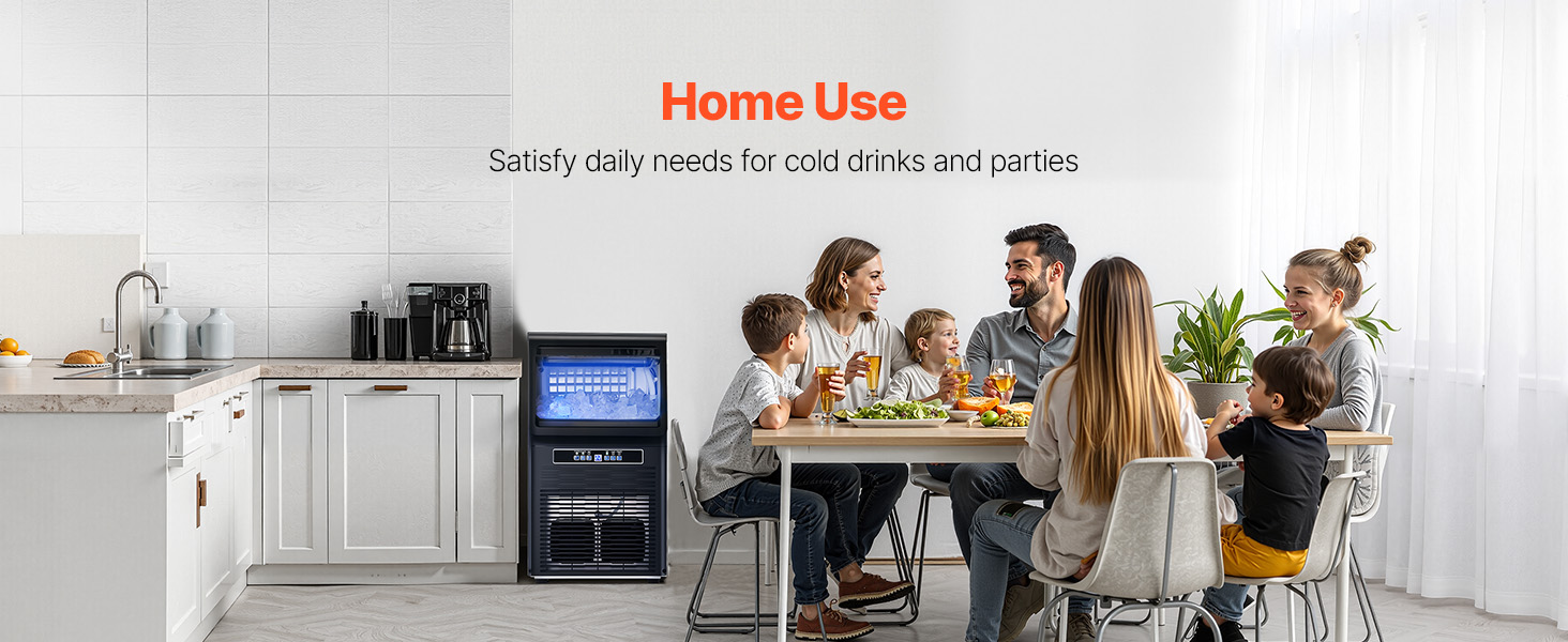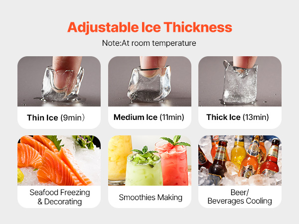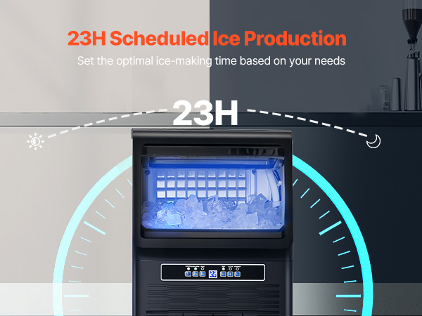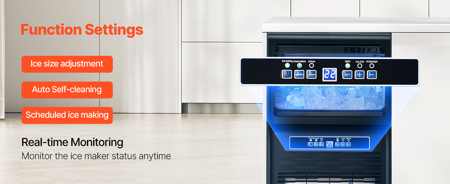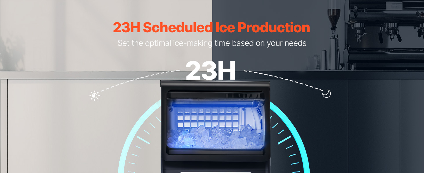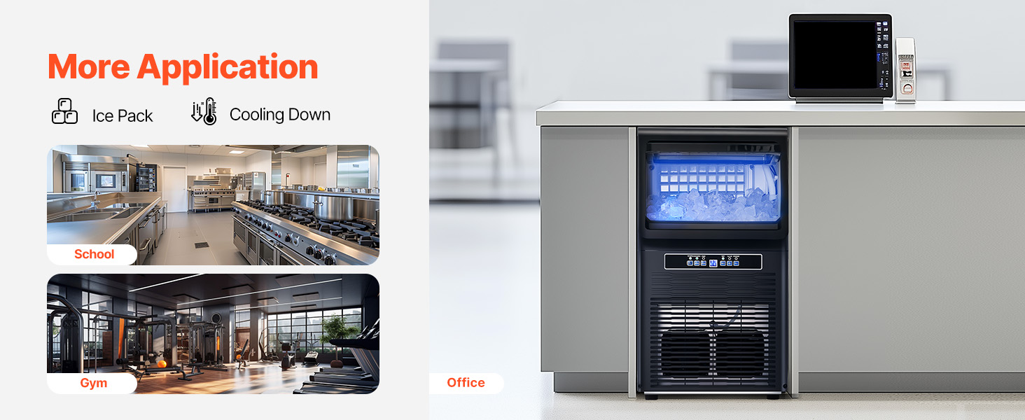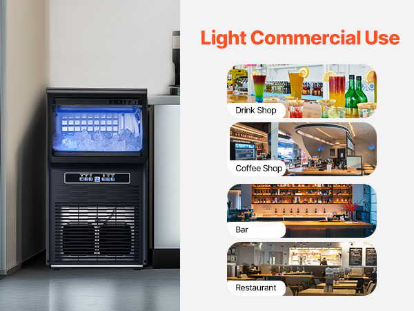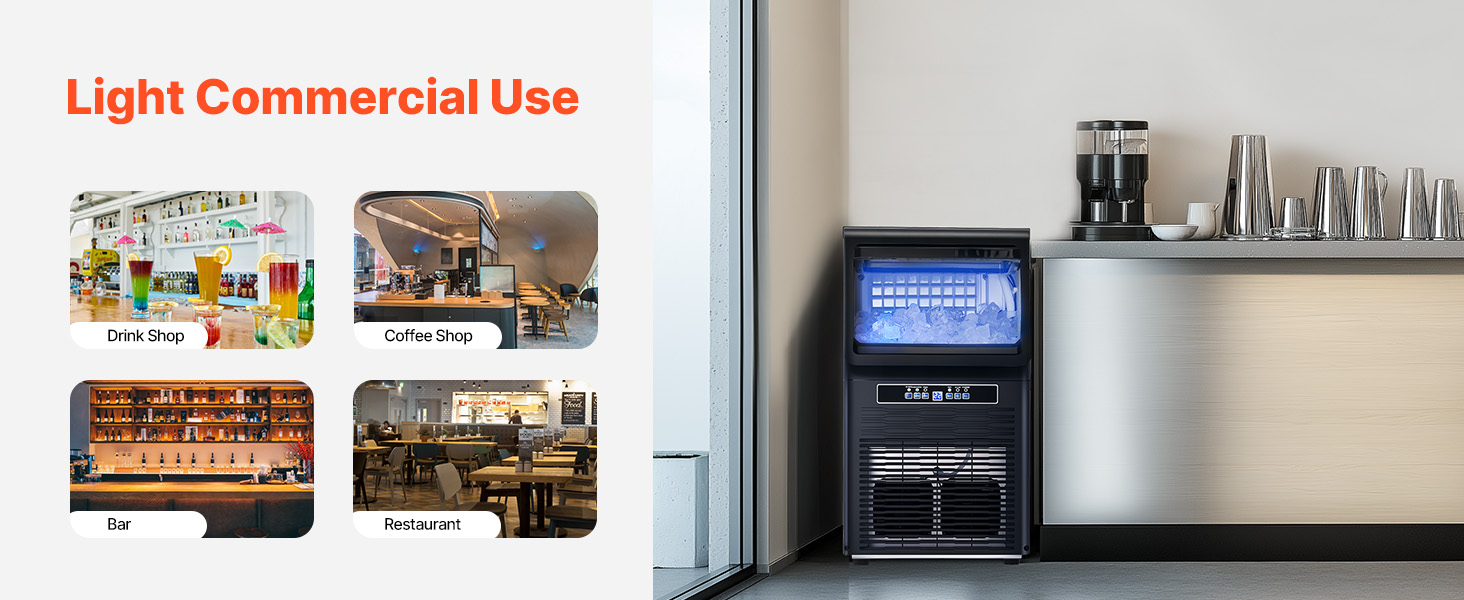Our commercial ice maker produces 80 lbs of ice cubes per day, and the 8-hour insulation function allows you to have ice cubes whenever you want.