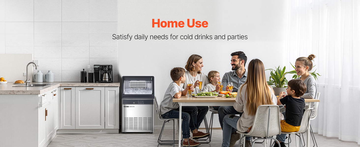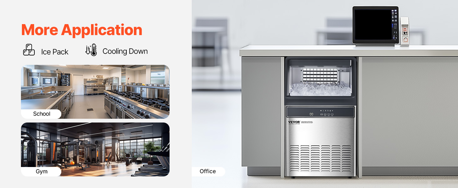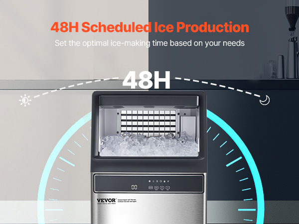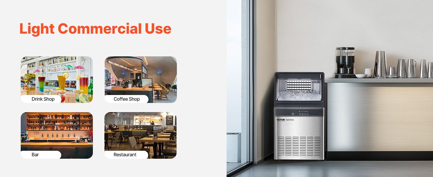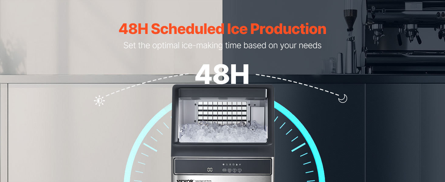 Our commercial ice maker produces 110 lbs of ice cubes per day, and the 8-hour insulation function allows you to have ice cubes whenever you want.