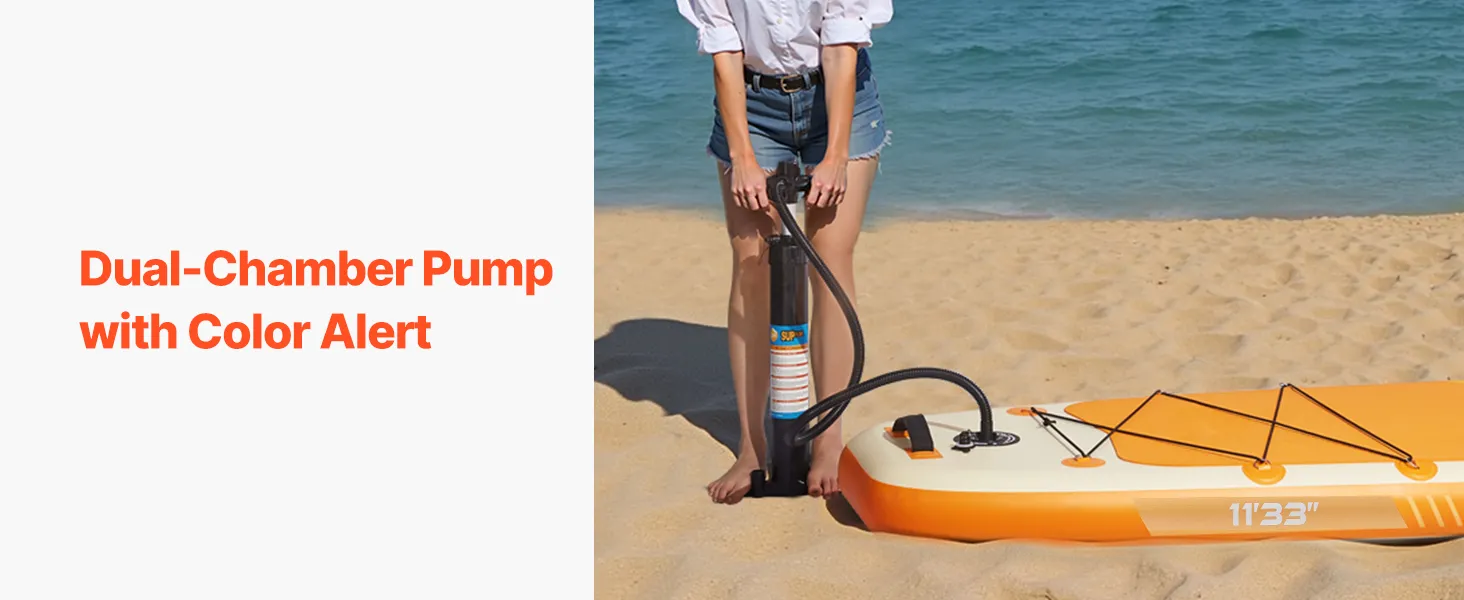 Q1: How many paddles come with the board?A1: Includes 1 professional paddle! Made of aluminum tubing for extra strength! Q2: Is the backpack sturdy enough?A2: Yes!Made of wear-resistant and durable fabric, it can accompany you outdoors.Q3: Is this paddle board suitable for beginners?A3: This paddle board is designed for beginners, even inexperienced users can quickly master paddling skills and enjoy fun on the water!Q4: What PSI is best?A4: 12-15 PSI (green zone on valve) is ideal. Q5: Is the pump durable?A5: Our double-cylinder high-pressure pumps are rigorously multi-inflation tested for long life.