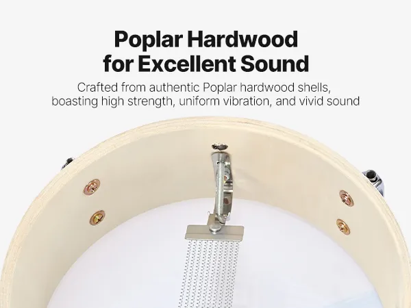 A: The drum shells are made of poplar wood with electrophoresis, painting, and electroplating processes, ensuring both sturdiness and a sleek finish.