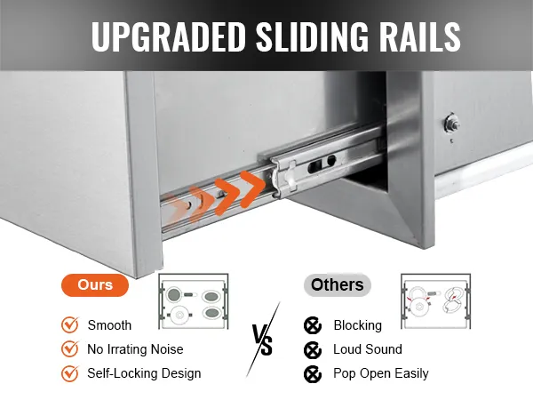 The outdoor kitchen drawer is made of thickened stainless steel with great rust and corrosion resistance. It can be cleaned up well with no marks or smudges left.