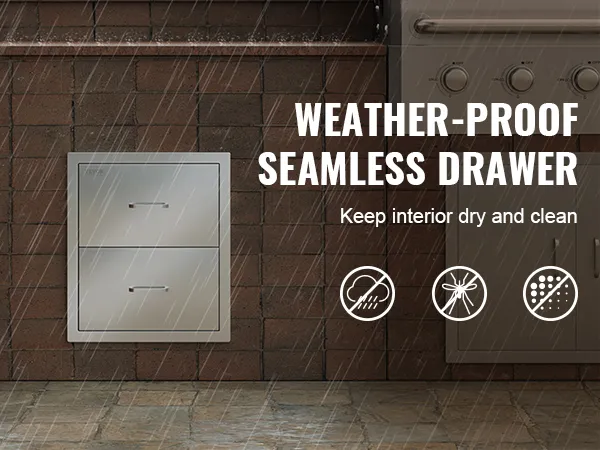 Our outdoor kitchen drawer with ample storage space can contain more kitchen tools. Made of stainless steel, it is durable and sturdy for long use. The fully enclosed box can effectively keep the insides from rain and wind. It is perfect for the outdoor kitchen and BBQ island to use.
