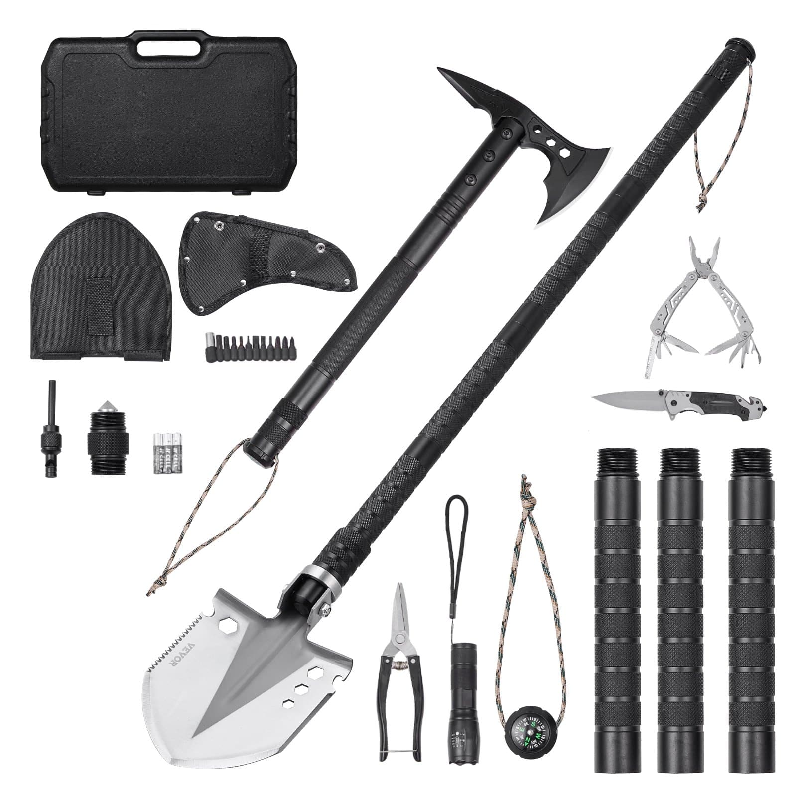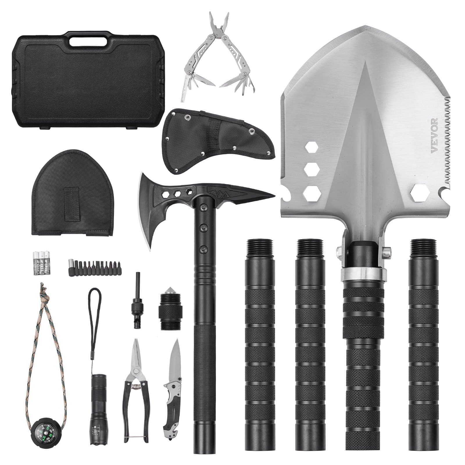 VEVOR Survival Shovel Survival Axe, 28-in-1 Camping Folding Shovels with Hatchet, Stainless Steel Tactical Shovel Hatchet Combo, Multifunctional Emergency Survival Gear Equipment for Camping Hiking