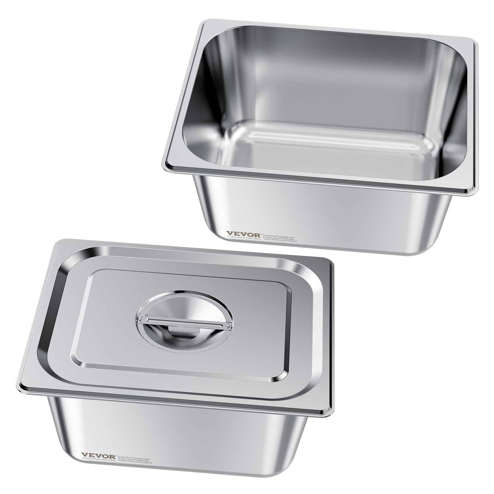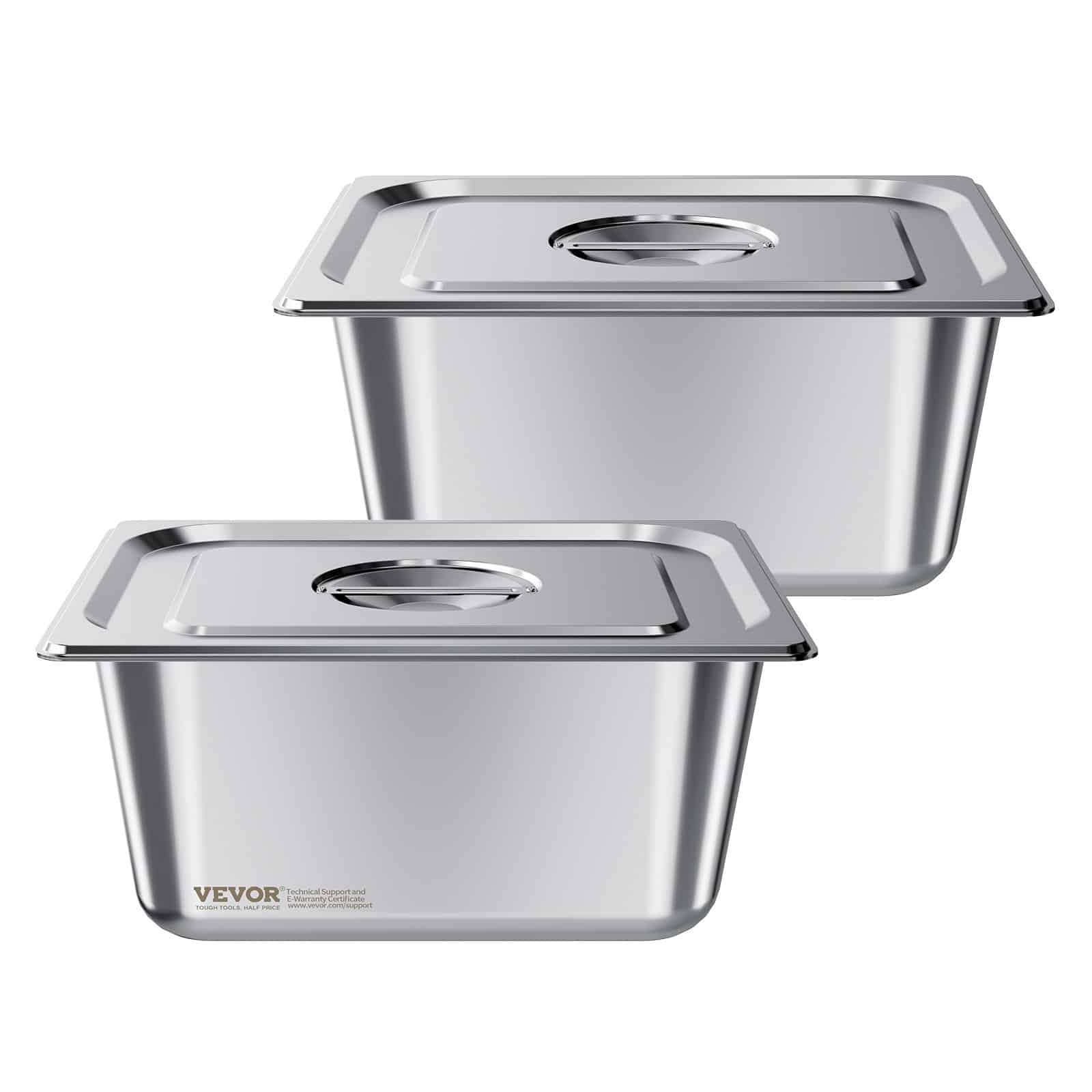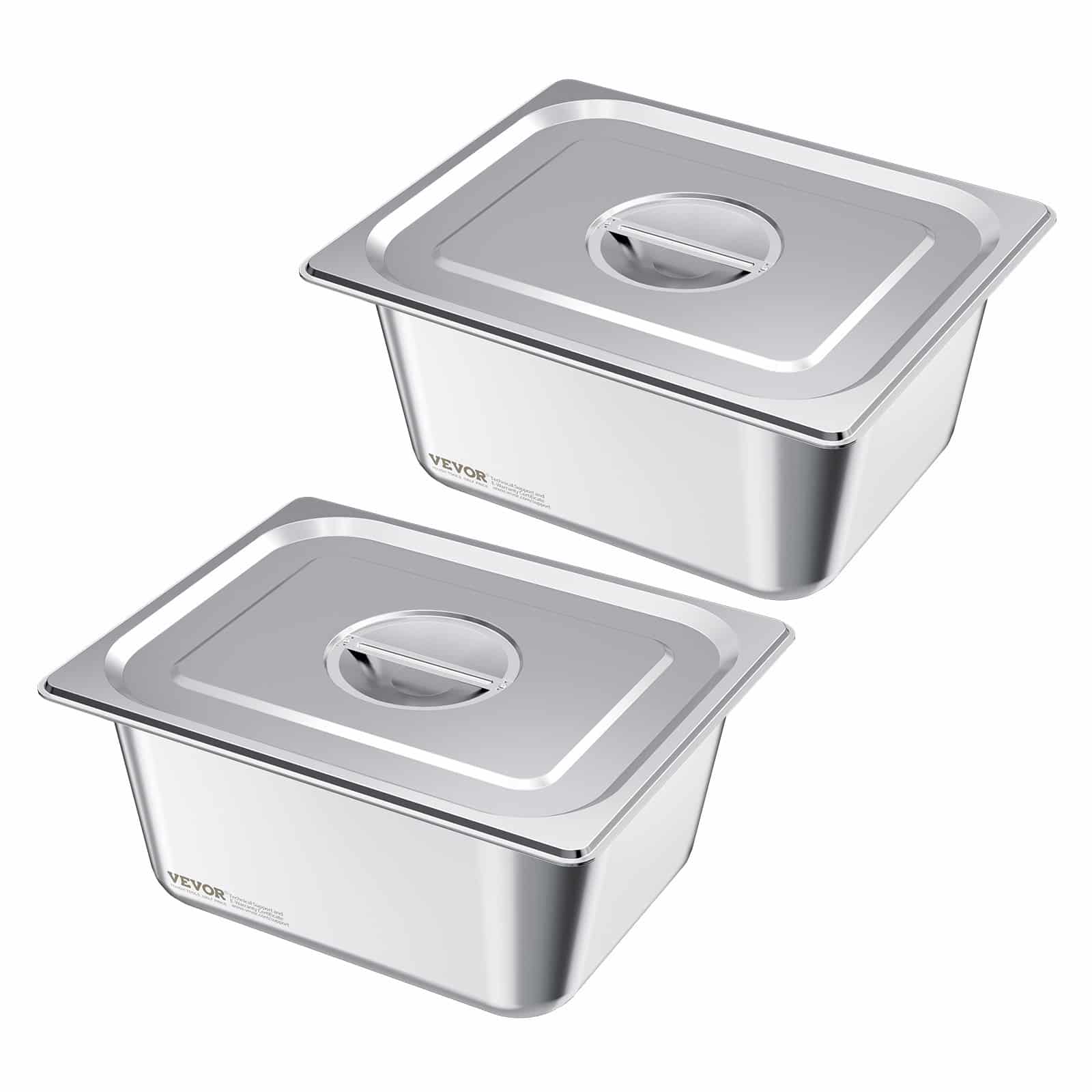 VEVOR Stainless Steam Hotel Pans with Lids, 1/2 Size x 148mm Deep, 9 L Table Steam Pans, Anti Jam Restaurant Supplies Reusable Catering Storage for Home, Party, Restaurant, Hotel, Buffet, 2 Pack
