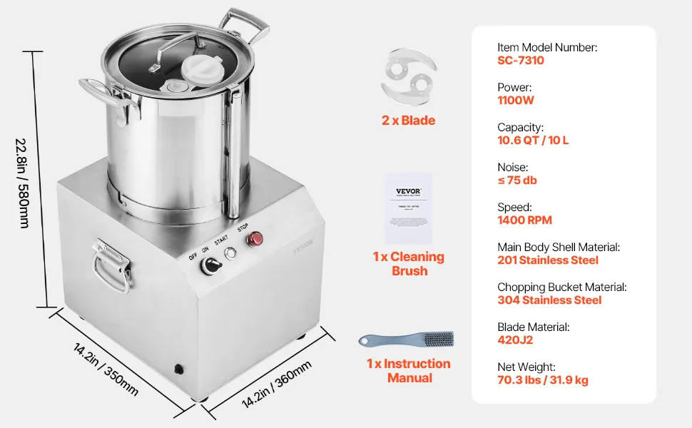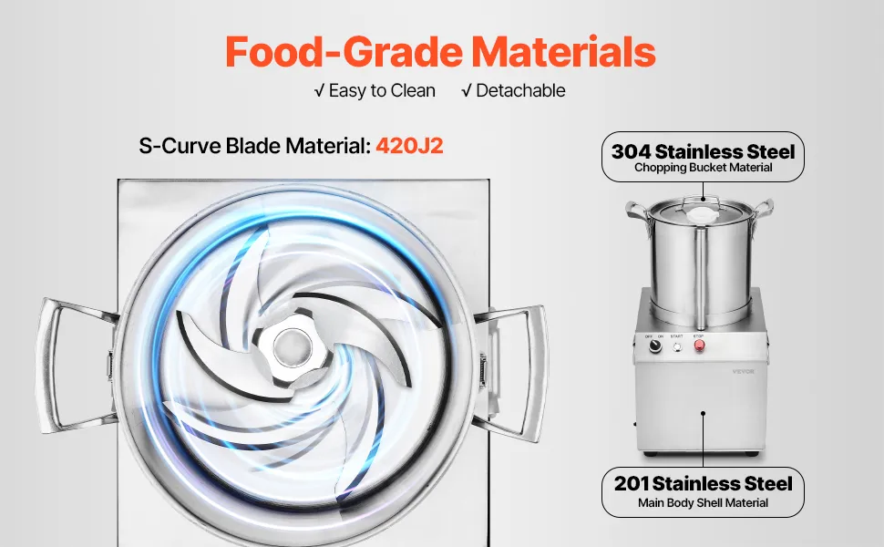 • Multi-Functional: This commercial multi-functional food processor features sharp S-shaped blades made from 420J2 stainless steel and includes two blades for convenience. Perfect for chopping various ingredients, including vegetables and fruits.