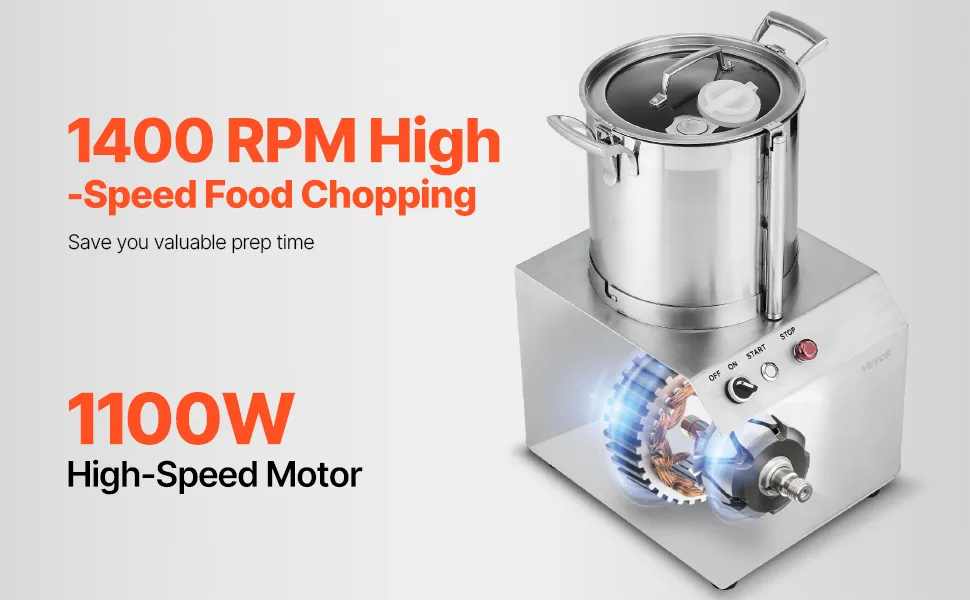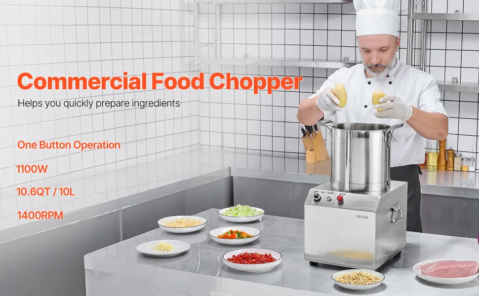 VEVOR 10L Stainless Steel Electric Food Processor & Vegetable Chopper, 1100W, Commercial Grade Blender