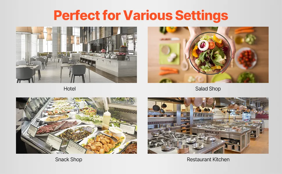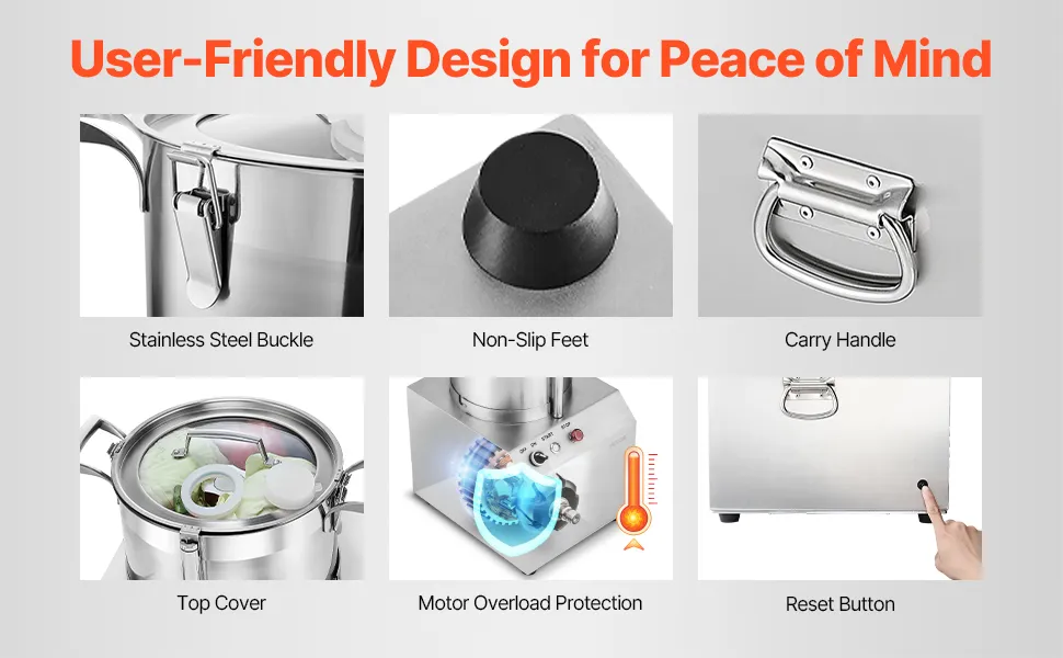 • Wide Application: Compact and sleek, this food processor chopper fits easily in any kitchen space, making it ideal for use in hotels, salad bars, snack shops, and restaurant kitchens.