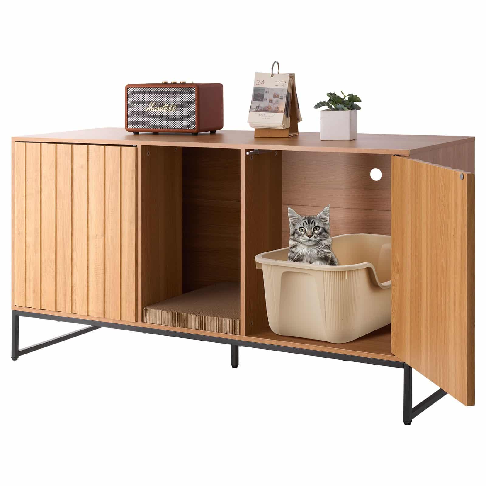 VEVOR Cat Litter Box Enclosure Furniture, 120 cm Hidden Litter Box Cabinet with Scratch Pad & Storage, Waterproof Cat Washroom End Table Cat House, Fit Most of Litterbox, for Bedroom Living Room