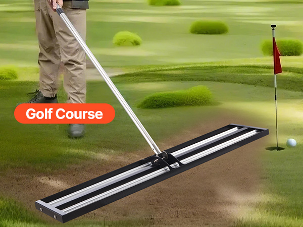 Our lawn leveling rake with wide ground plate, efficiently level the ground. The stainless steel and aluminum alloy with rust-resistant surface and solid welding for a long time use. The 180° rotating handle with rubber sleeve and adjustable length make it ideal for farms, gardens, golf courses.
