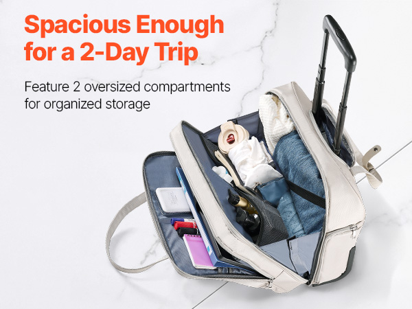 Featuring the carry-on design, this rolling laptop bag allows easy access to your essentials during flights, boosting productivity. Skip baggage check and claim to simplify your travel process significantly.