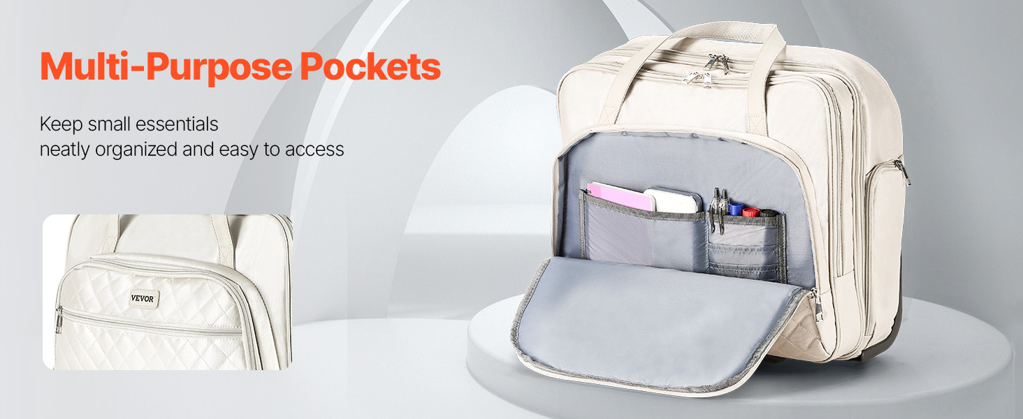 Our rolling briefcase has multiple compartments to provide dedicated spaces for laptops and electronics, reducing impacts and safeguarding damage.