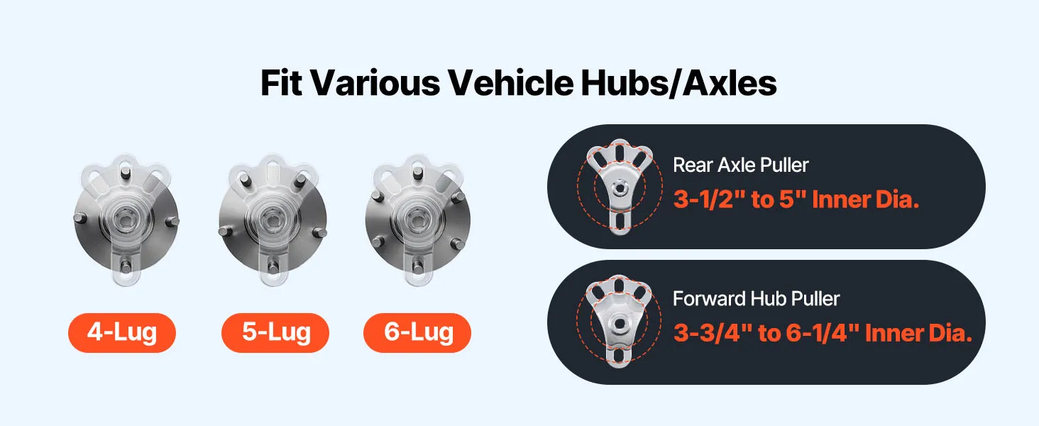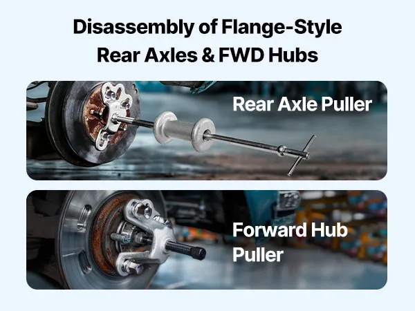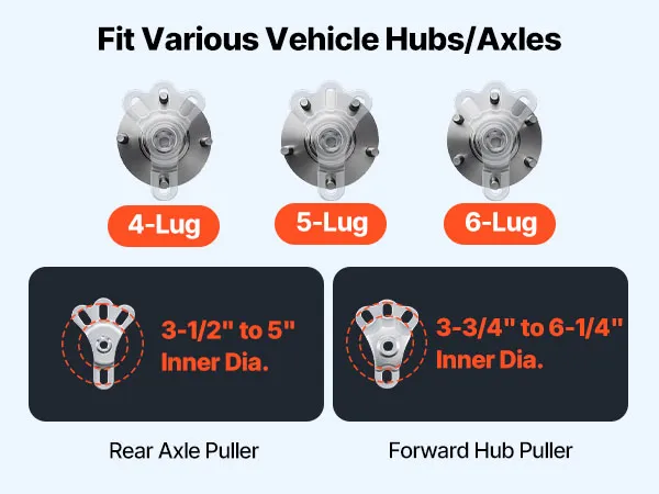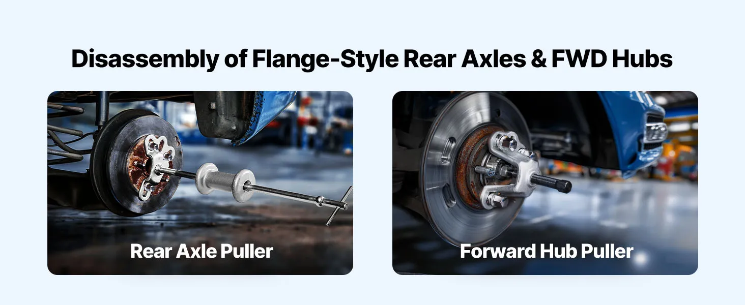 • Pulls 4- to 6-Lug Hubs & Axles: Use the rear axle puller and FWD hub puller to detach flange-style rear axles and forward hubs with ease—no hammering or damage to vehicle parts with our slide hammer bearing puller