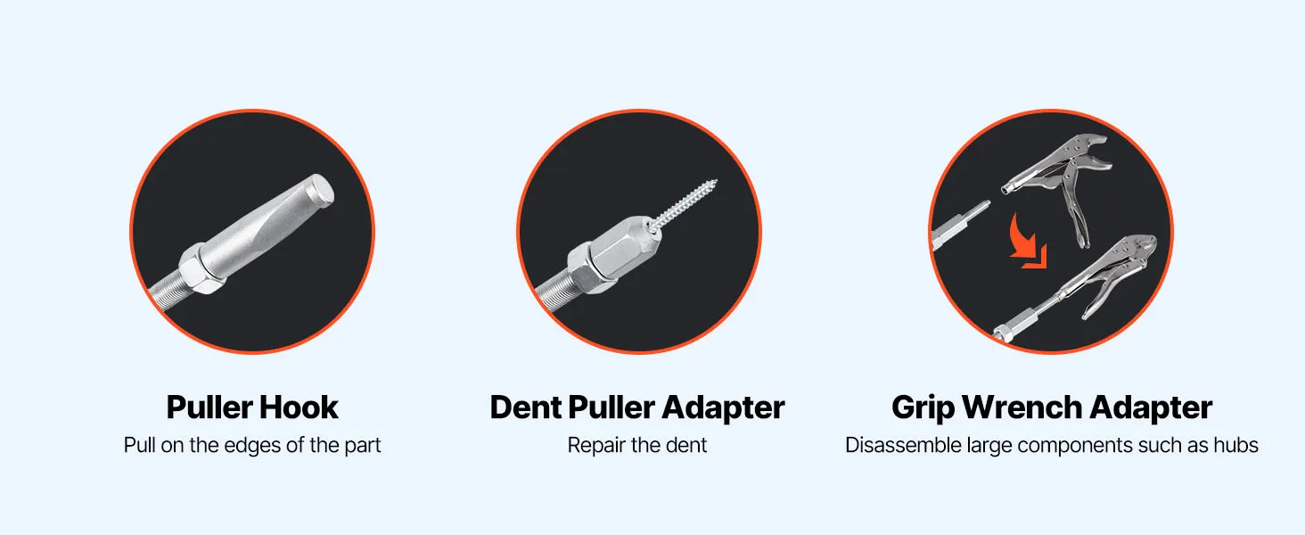 • 9-in-1 Multi-Purpose Set: Our 9-way slide hammer puller set includes a 4.3 lbs slide hammer for various pulling tasks—like flange-type rear axles, most FWD hubs, dent pulling, and press-fit parts such as bearings, bushings, gears, and pulleys