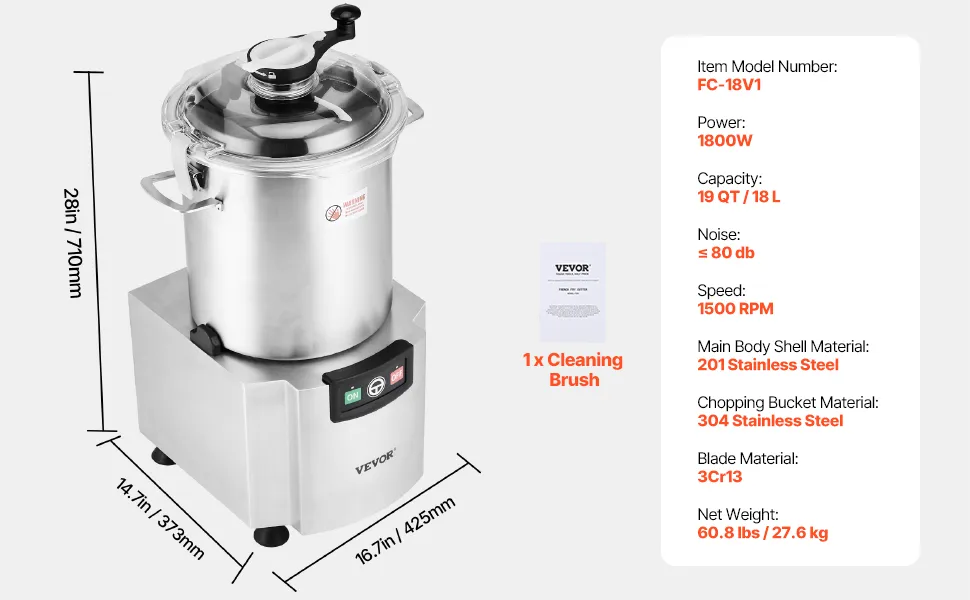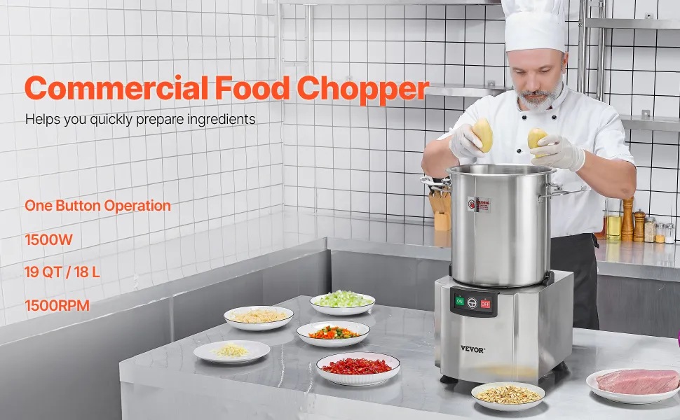 VEVOR Food Processor & Vegetable Chopper, 18L Food-Grade Stainless Steel Food Processor Chopper with S-Curve Blade and Scraper, Ideal for Chopping Vegetables, Fruit, Grains, Nuts