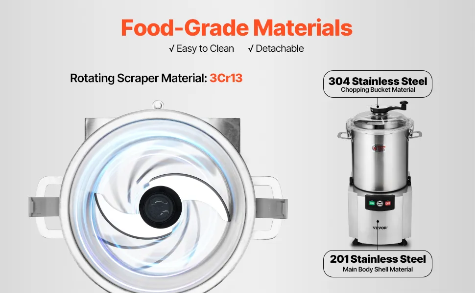 Our food processor is built with an all-stainless steel body featuring easily detachable and washable components for effortless maintenance. You can trust in the quality of materials we use to ensure your food stays secure and delicious.