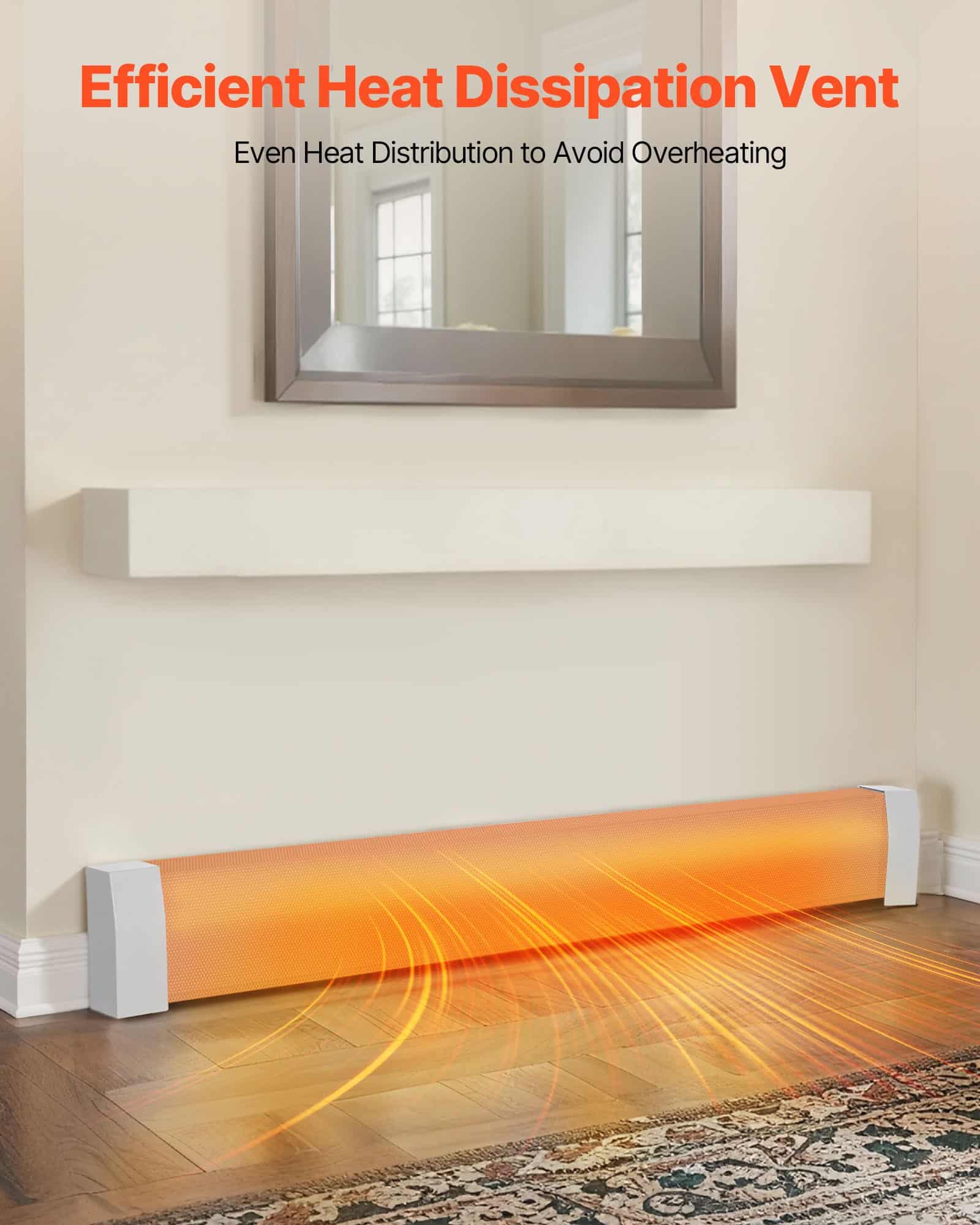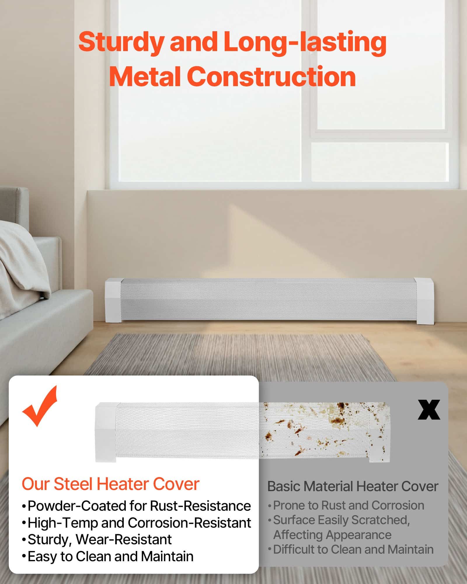Made from sturdy steel, this radiator enclosure ensures long-lasting use without deformation. It also includes scratch-resistant end caps to avoid damage during everyday use. The optimized vent design avoids overheating, extends the heater's lifespan.