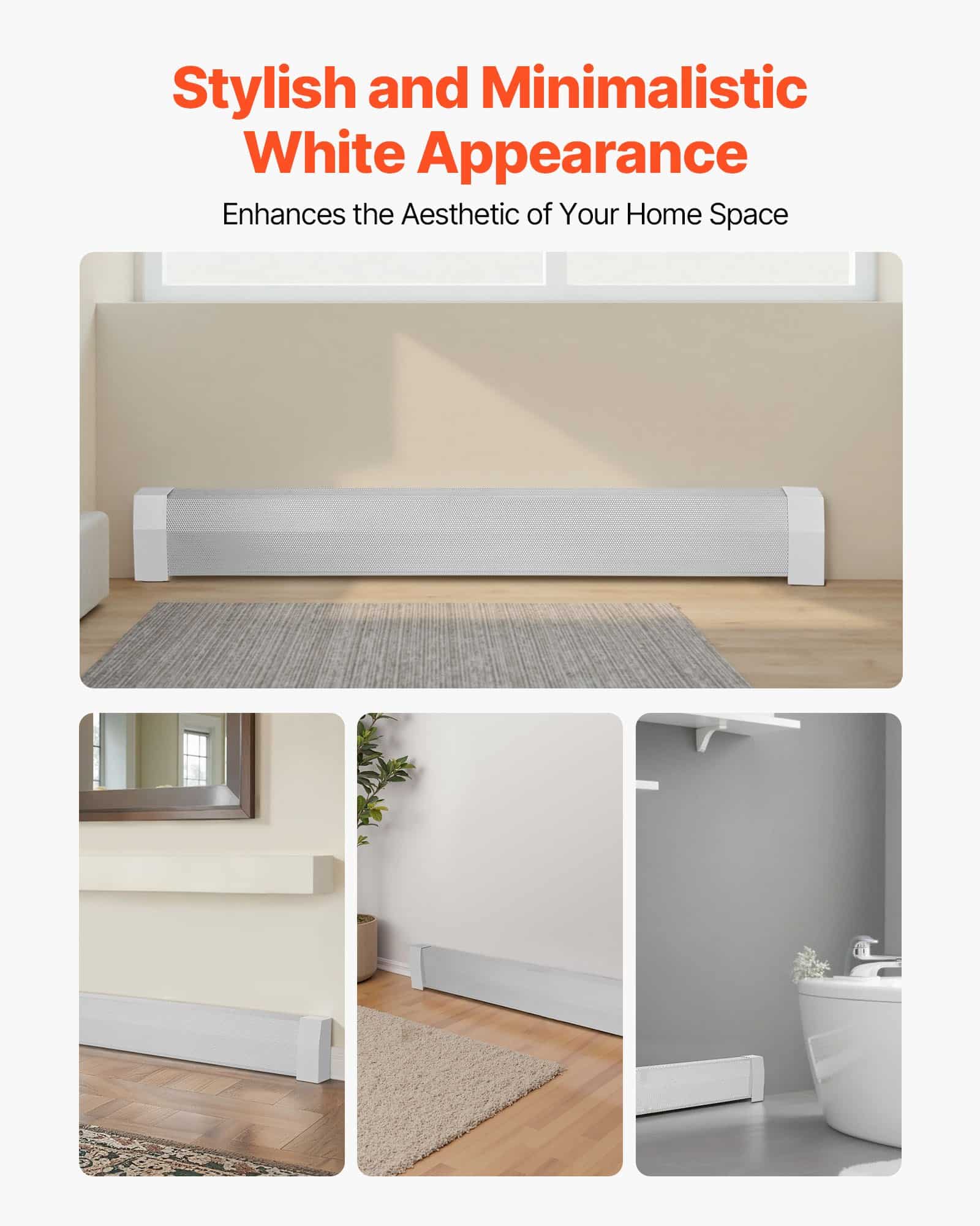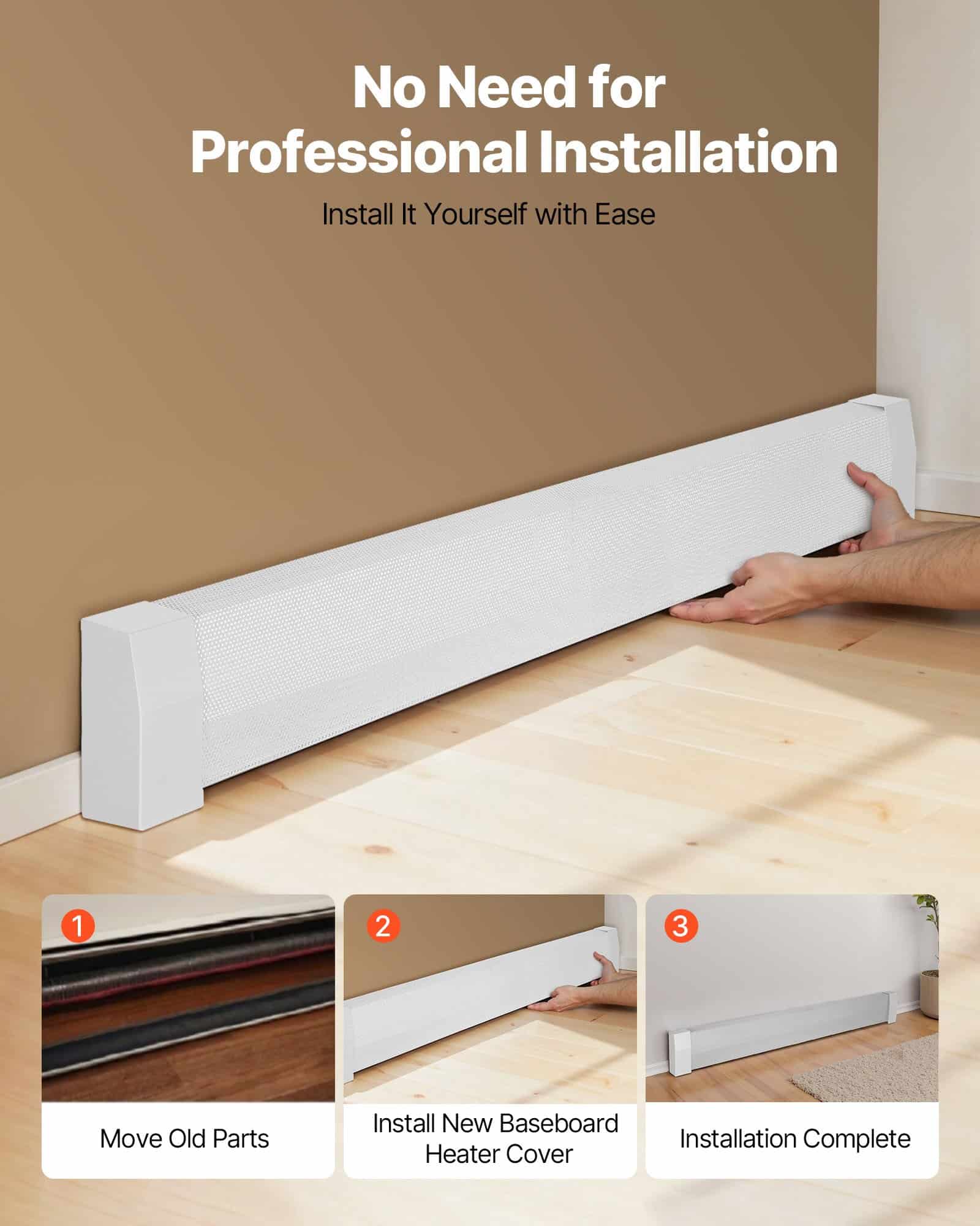 VEVOR Baseboard Heater Covers, Premium Series 1527 mm Standard Electric Heating Unit Front Cover for Home Improvement, Heavy-duty Steel, Easy Installation for Bedroom Replacing Old Cover, White