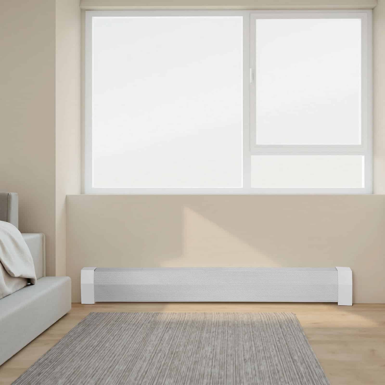 This baseboard heater cover replacement fits various heaters, made from sturdy steel with a powder-coated finish for easy cleaning. The efficient ventilation avoids overheating and ensures even heat distribution. Easy to install, its sleek white design complements any home decor.