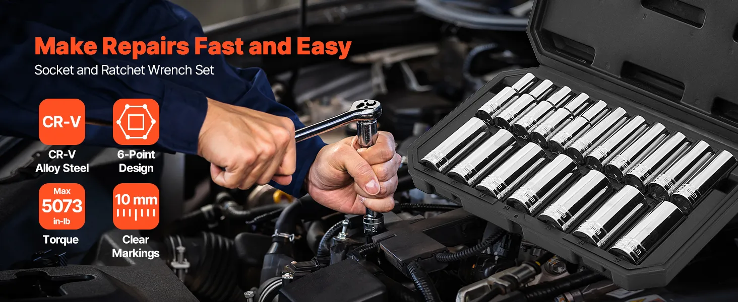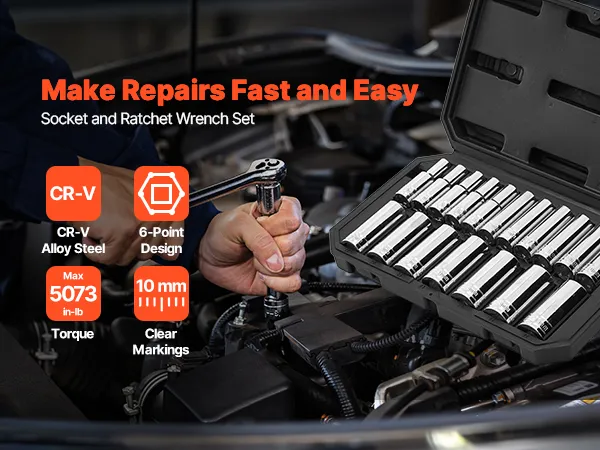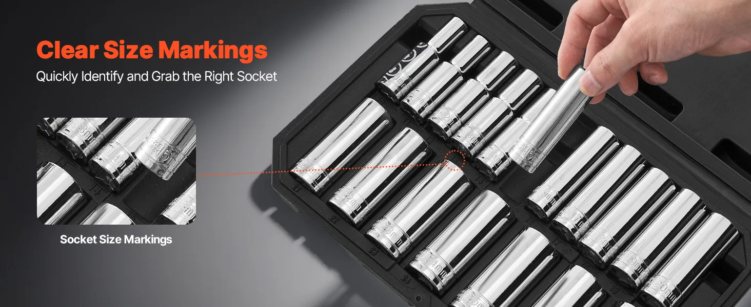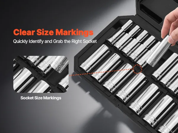 Each socket features engraved, easy-to-read size markings that are highly wear-resistant. This socket tool set ensures quick identification and faster access to the right tool when you need it.