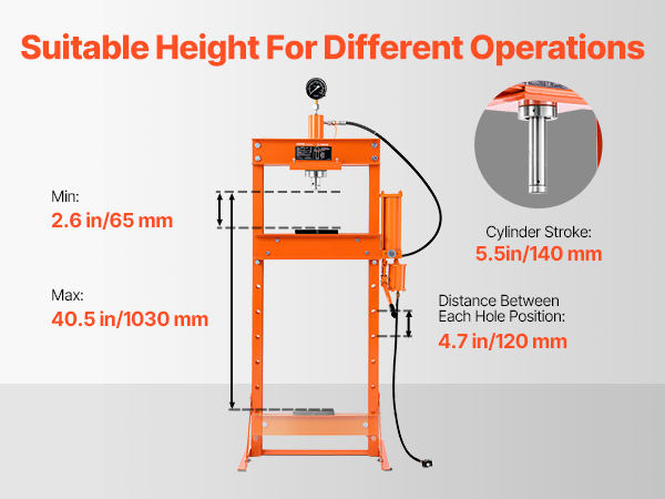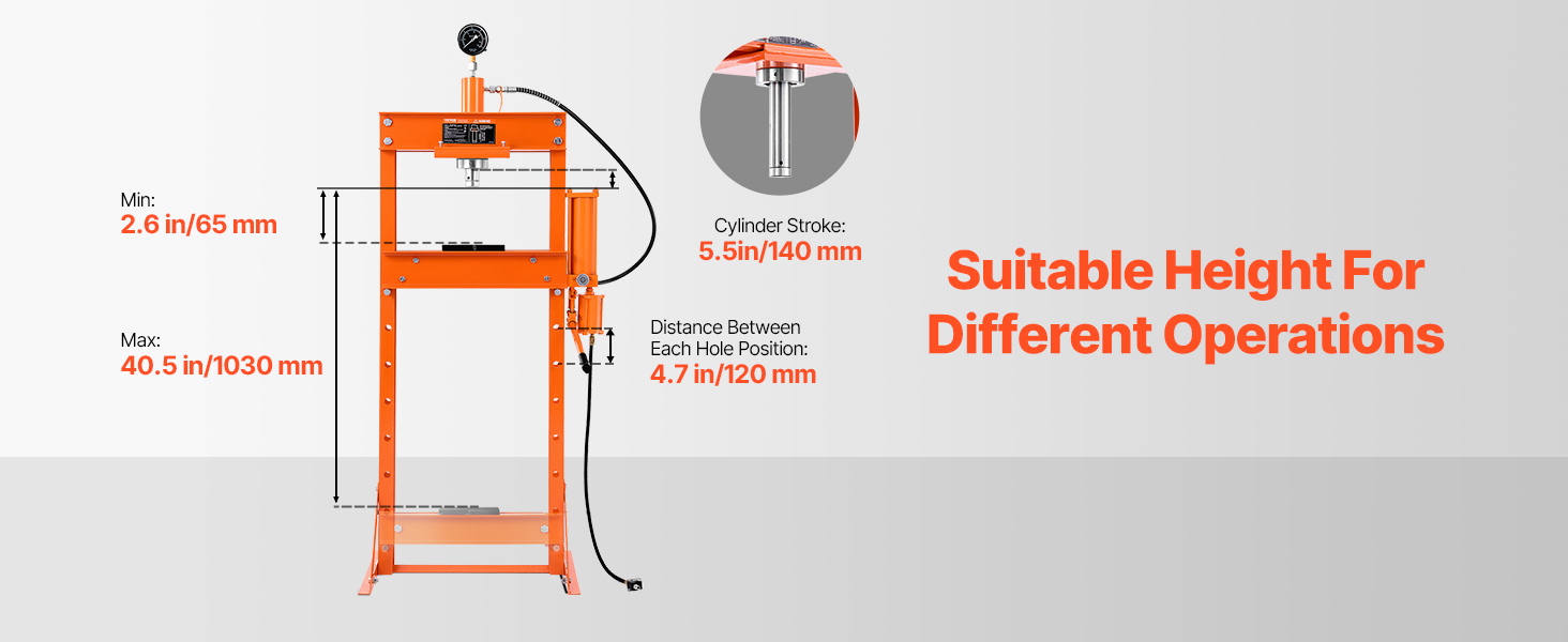 VEVOR Hydraulic Shop Press, 20 T H-Frame Pneumatic Shop Press with Press Plate, Stable Garage Floor Adjustable Hydraulic Press with Triangular Support, Fit for Bending, Straightening & Stamping
