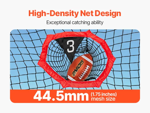 Featuring a high-density 44.5mm mesh hole size design, this football throwing net ensures compatibility with passing drills.