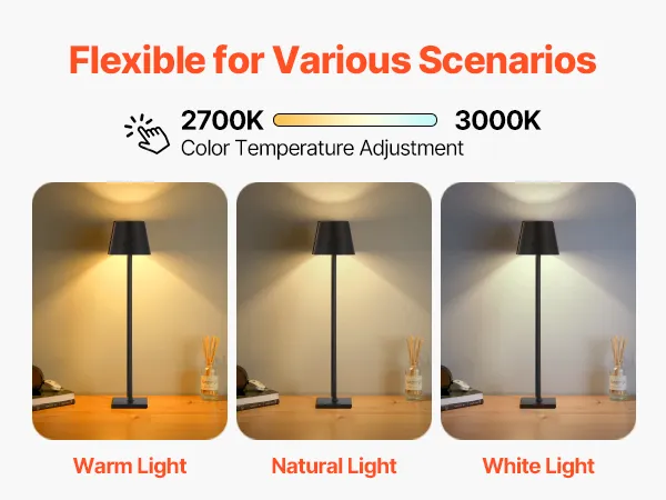 The smooth even coating makes the rechargeable table lamp durable even in harsh environments. It's highly scratch-resistant, maintaining a like-new appearance and avoiding rust to extend its lifespan.