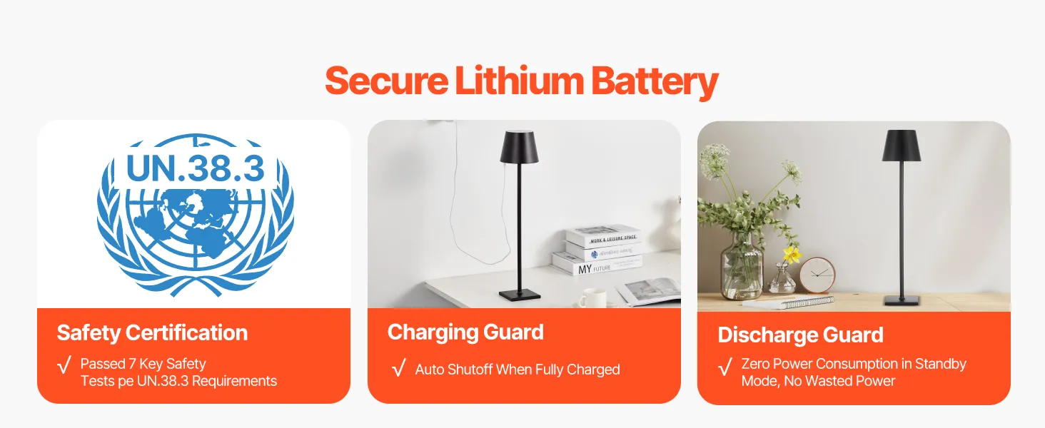 Professional structural design with additional limiting and fixing devices ensures that the cordless lamp remains steady. Even with frequent plug-ins and unplugging, the lamp shade's base stays secure, avoiding dents or detachment.