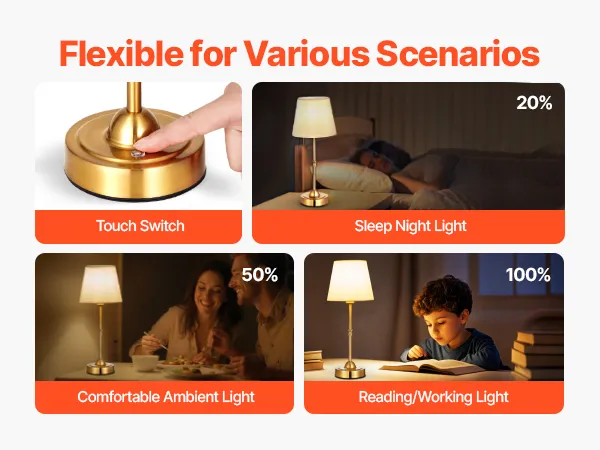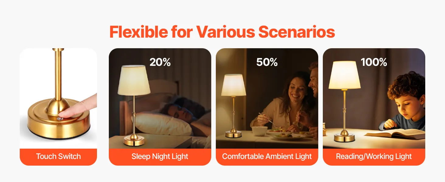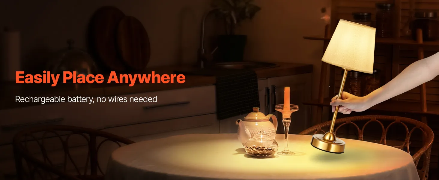 This cordless table lamp ensures long-lasting performance for all your lighting needs. Whether reading, working, or enjoying outdoor activities, it provides a steady light source. With three adjustable brightness settings, easily switch from soft ambiance to bright reading light.