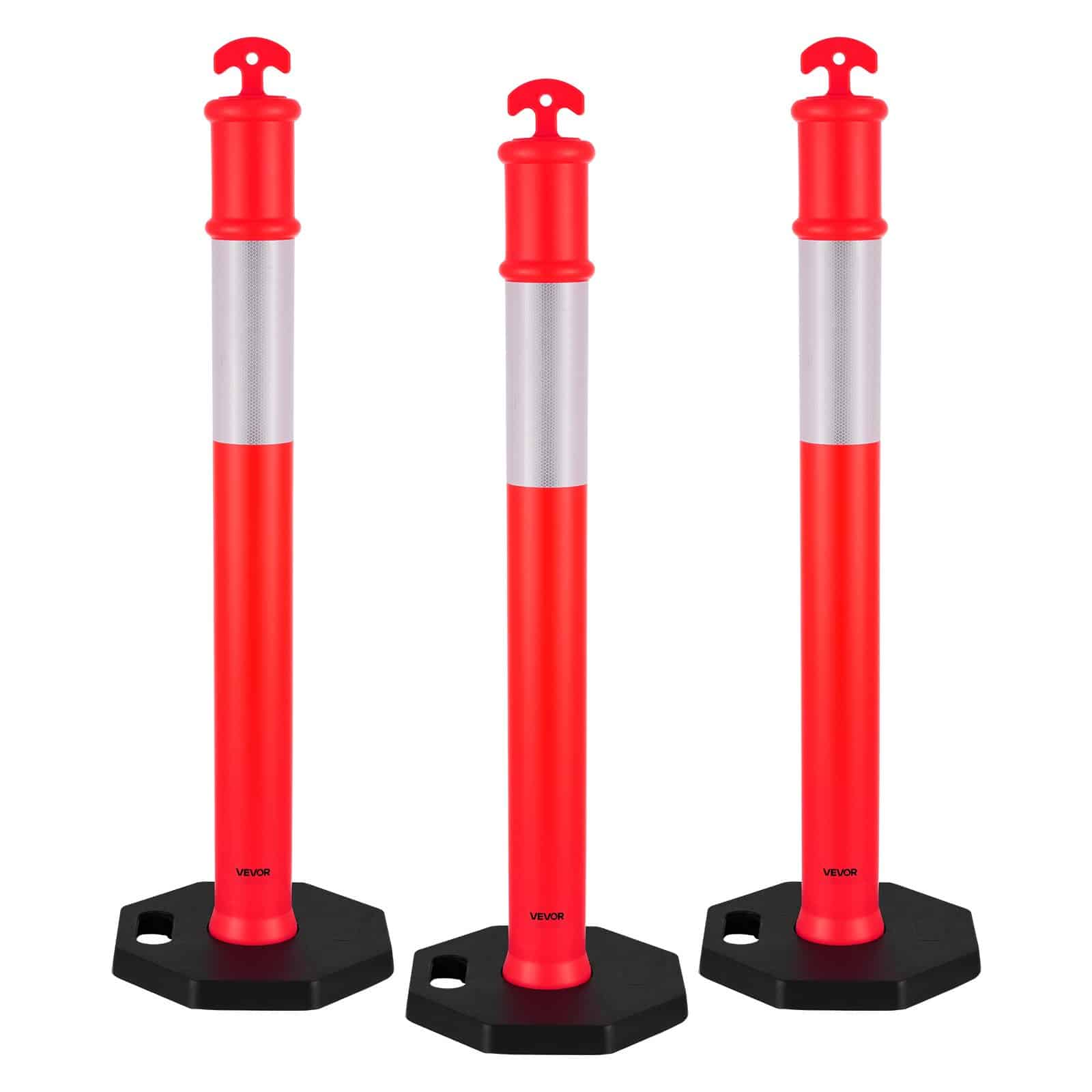 VEVOR 3 Pack Traffic Delineator Posts, 1140 mm Traffic Safety Cones with Weighted Base and Reflective Strips, Heavy Duty Delineator Posts for Construction Site, Parking Lot, Crowd Control, Red