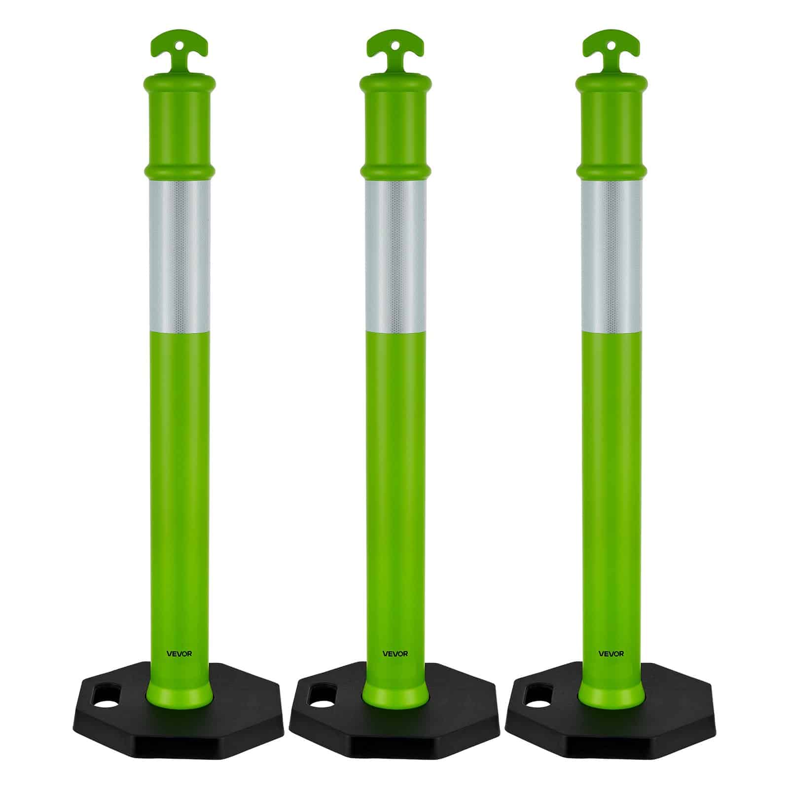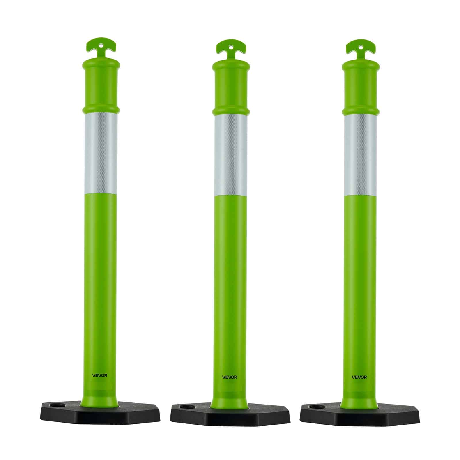 VEVOR 3 Pack Traffic Delineator Posts, 1140 mm Traffic Safety Cones with Weighted Base and Reflective Strips, Heavy Duty Delineator Posts for Construction Site, Parking Lot, Crowd Control, Green