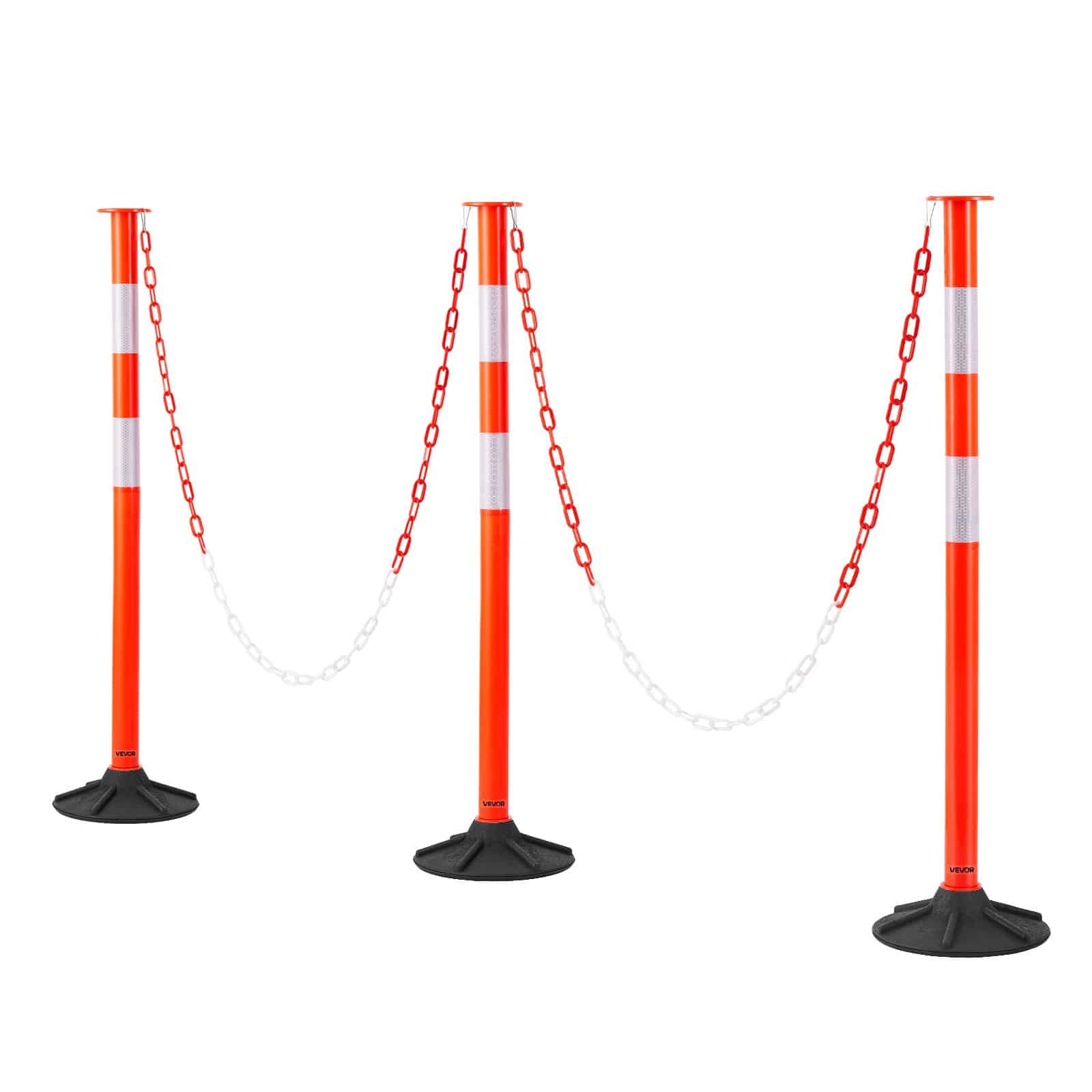 VEVOR 3 Pack Traffic Delineator Posts, 871 mm Traffic Safety Cones with Weighted Base, Reflective Strips and Chain, Heavy Duty Delineator Posts for Construction Site, Parking Lot, Crowd Control, Red