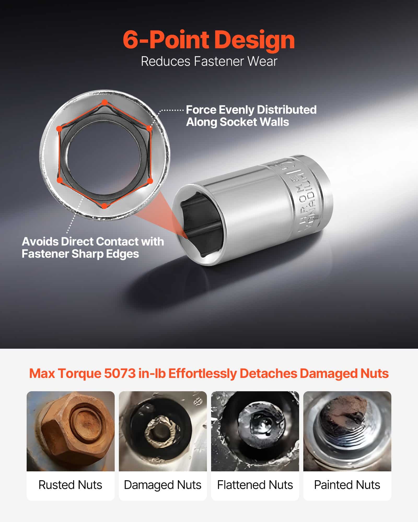 Built from high-quality, rust-resistant materials, this 1/2 inch socket set delivers superior impact performance. The high-torque construction ensures enough force to tackle seized or corroded nuts, making repairs and disassembly faster and easier.