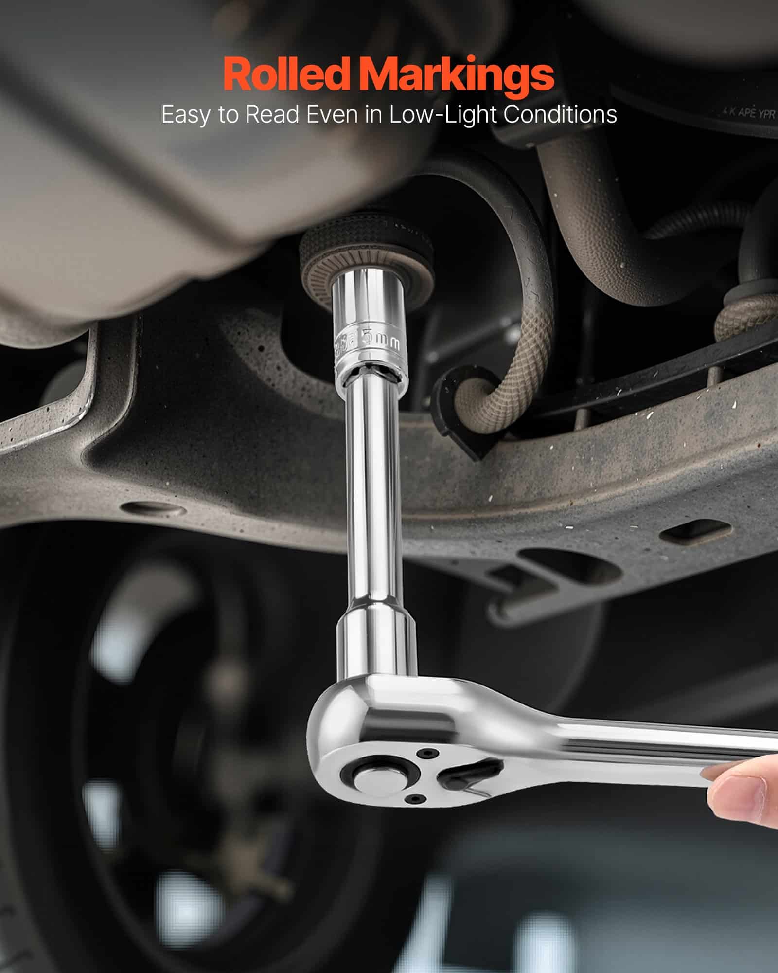Each socket features engraved, easy-to-read size markings that are highly wear-resistant. This socket tool set ensures quick identification and faster access to the right tool when you need it.
