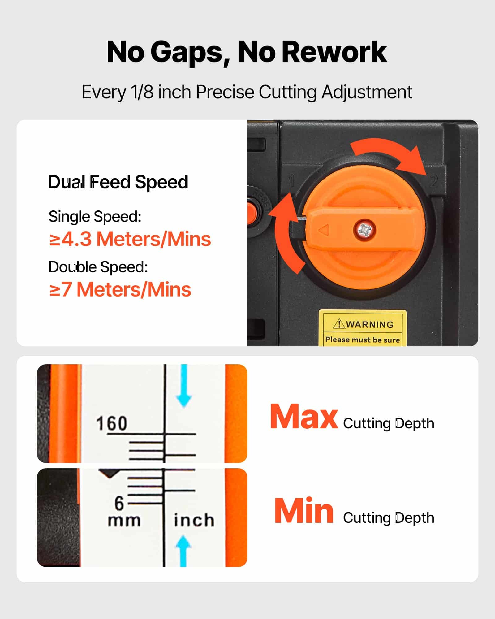 Designed for DIYers and small workshops. This woodworking planer machine features a dual-roller feed system, two feed speed, a powerful motor, 1/8-inch precise depth control, and millimeter-level accuracy, easily handling thick hardwoods. Built-in dust ports keep your space clean.