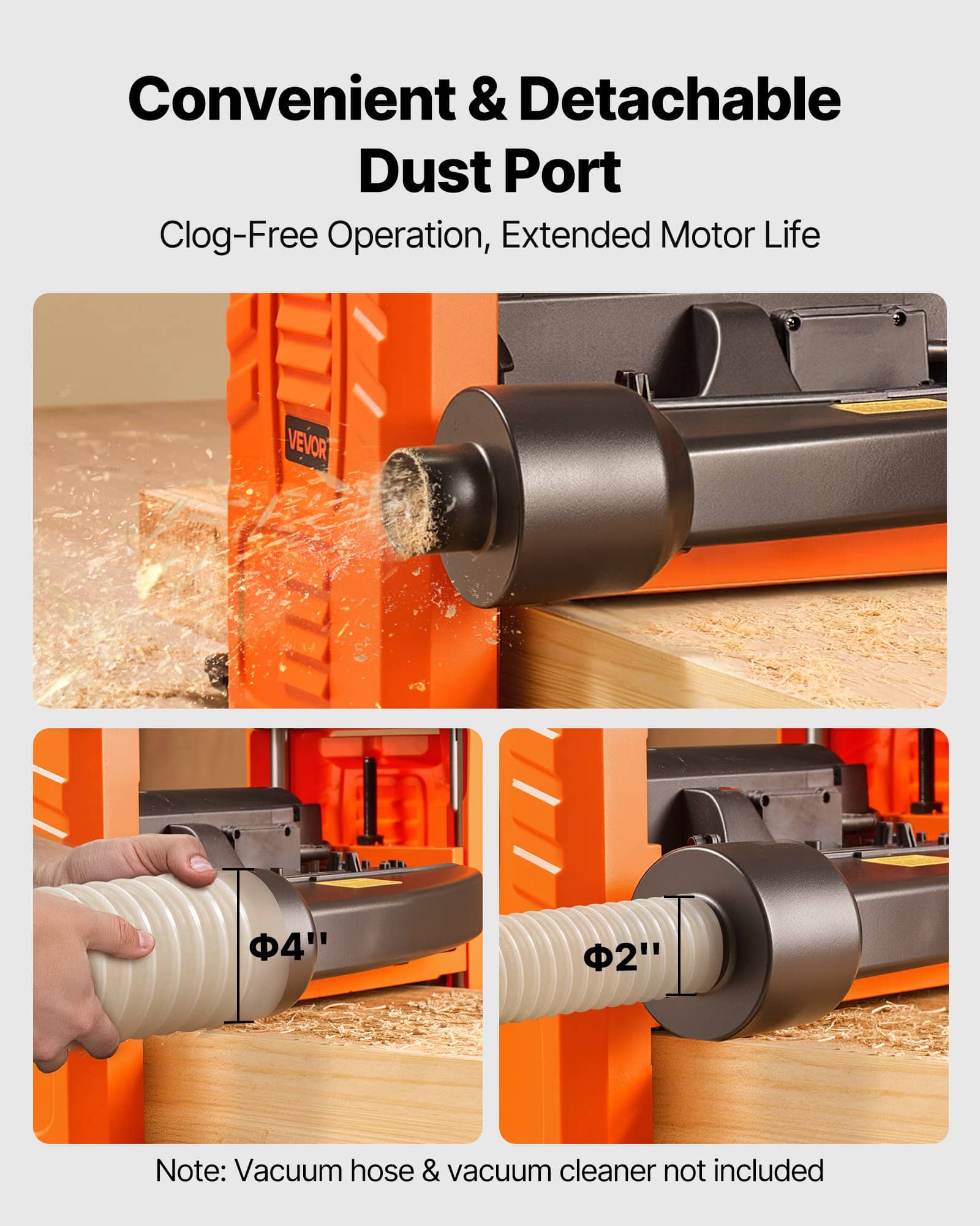A: Yes, it includes a universal dust port compatible with 1.9-inch adapters and 3.9-inch hoses. But the vacuum and dust bag are not included and sold separately.