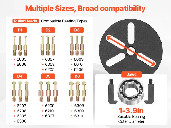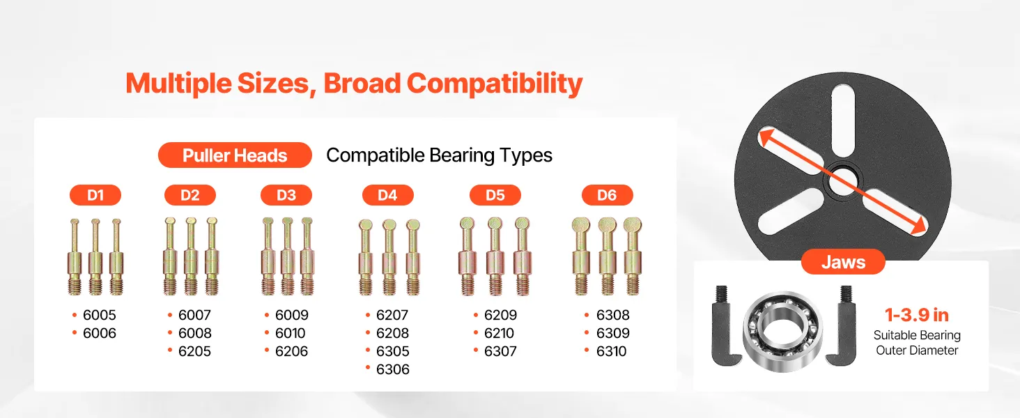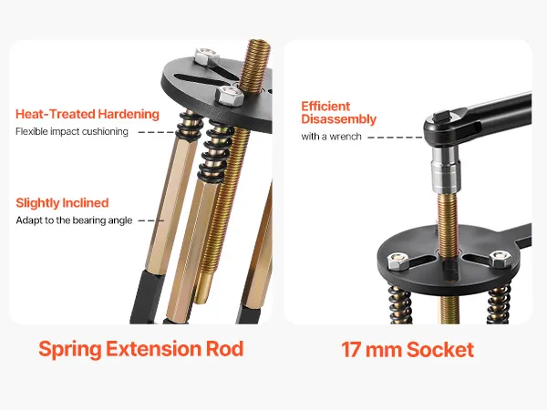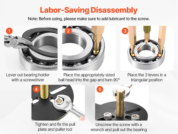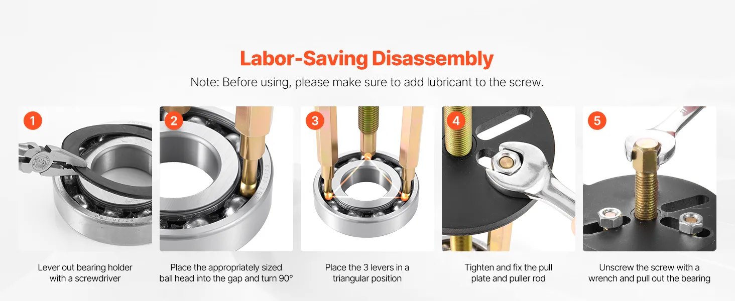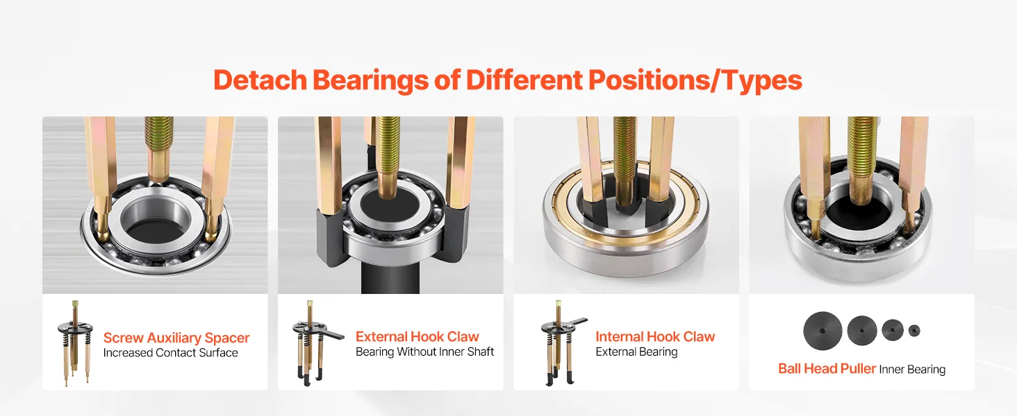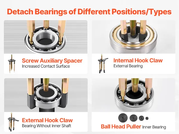 This bearing puller set is equipped with screw auxiliary spacers to expand the contact area of the screw, helping you pull bearings apart more efficiently.