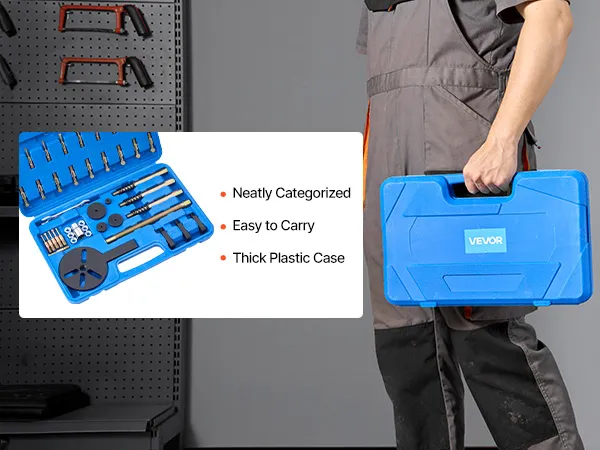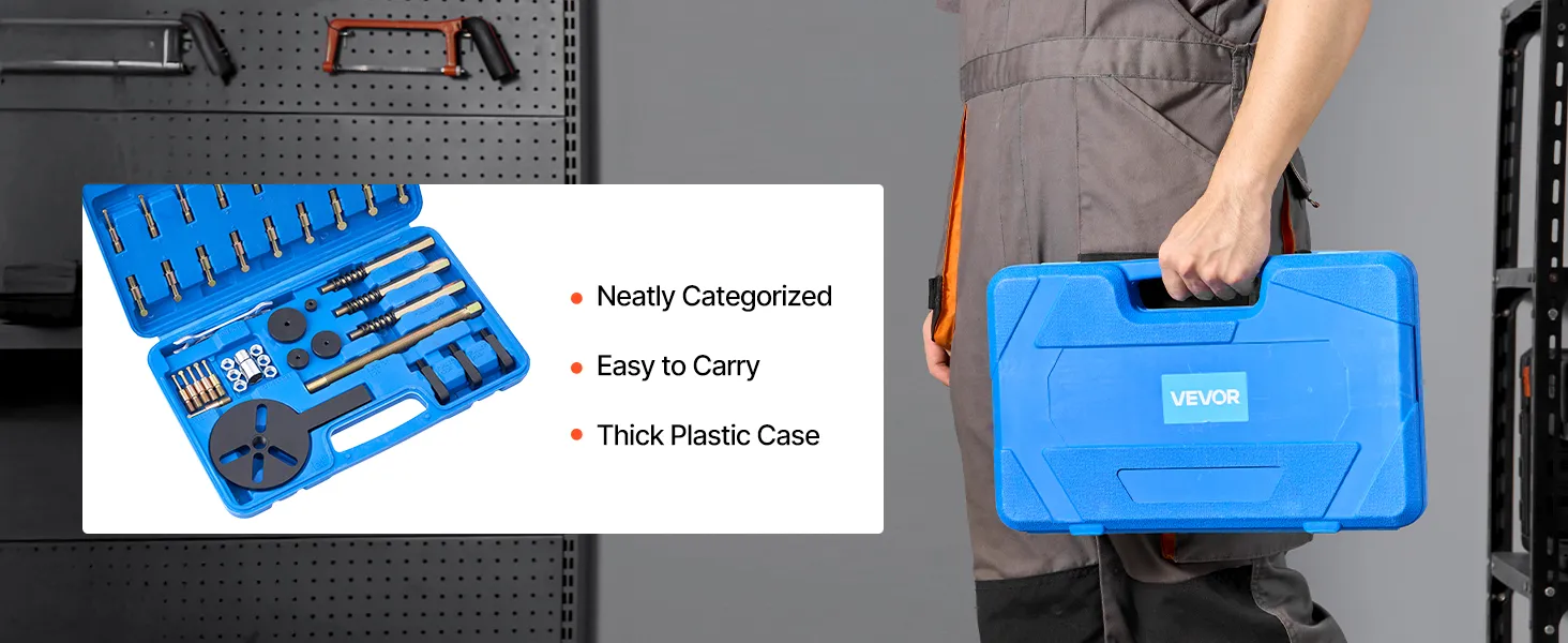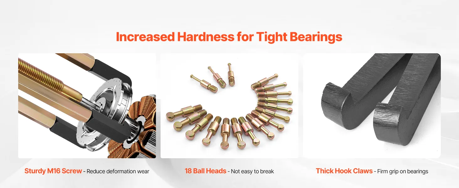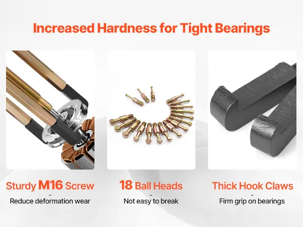 Our bearing puller set is designed for fast bearing removal. Crafted from high-strength steel with a heat-treated screw, it resists bending or breaking. 18 ball-head rods precisely match common bearing models. All components are neatly packed in a plastic case for easy storage and portability.