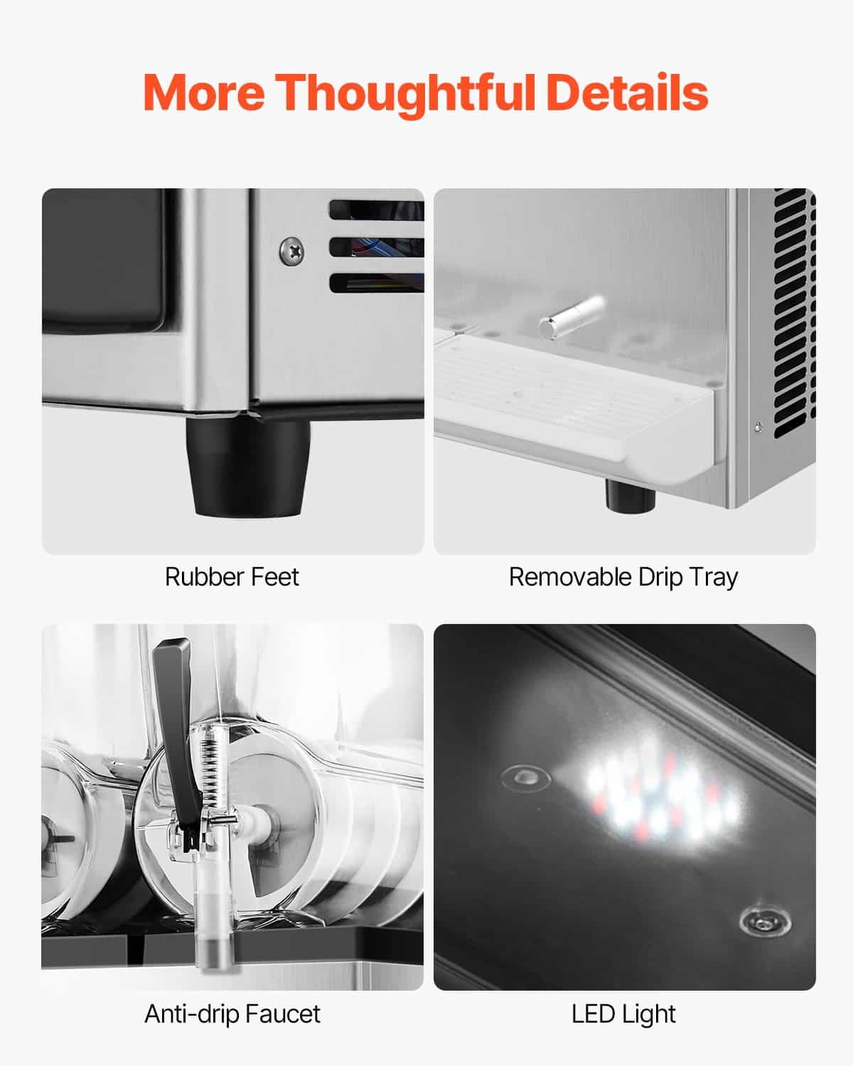 Equipped with a high-quality compressor and a full copper condenser, this commercial slushie machine cools quickly, is energy-efficient, runs stably, and operates with low noise.
