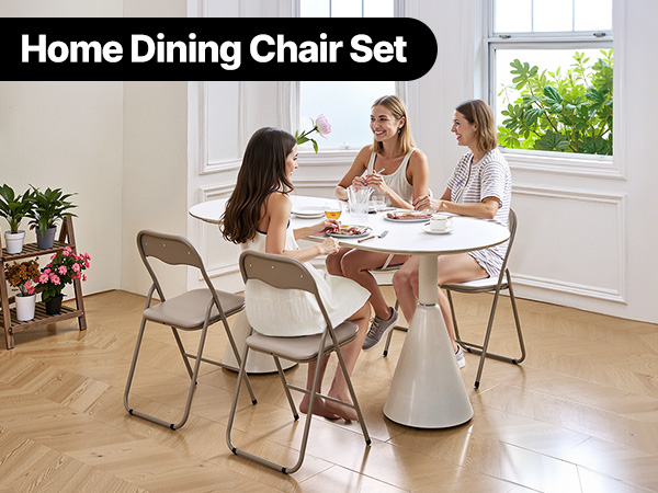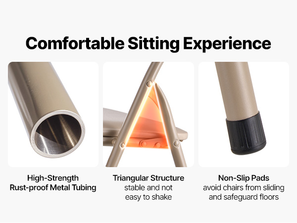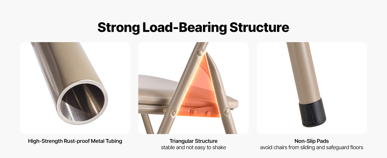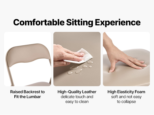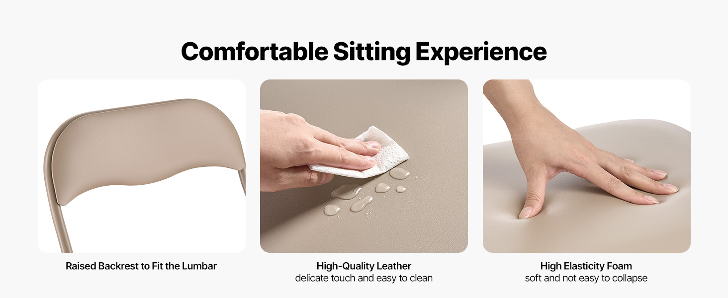 VEVOR 4 Pack Folding Chairs, Foldable Leather Chairs with Heavy Duty Metal Frame & Padded Cushion, Portable Folding Card Table Chairs, Stackable Seats for Home, Yard, Garden, Parties, Events, Khaki