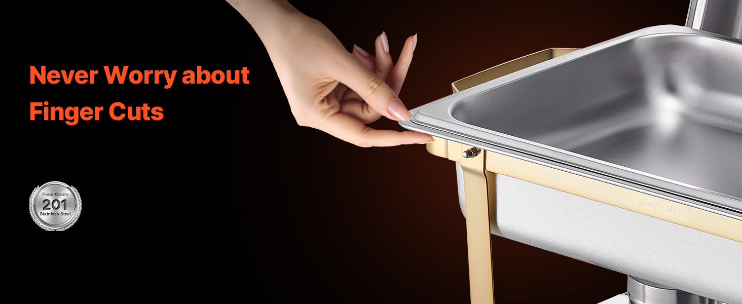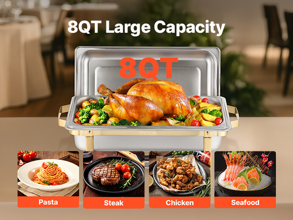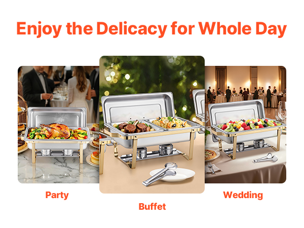 This chafing dish set provide you with more space to accommodate food at parties and self-help, serving at least 8 people.