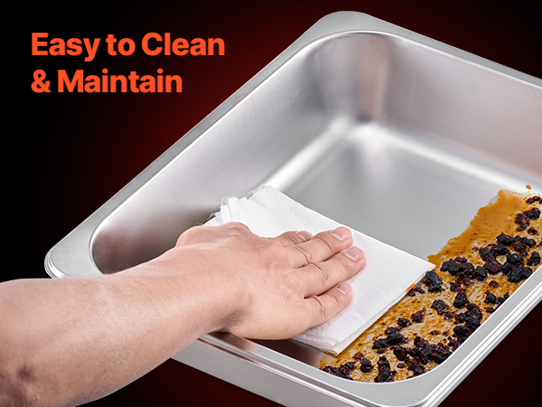 Q1: Can this chafing dish be used for both hot and cold food?A1: This chafing dish is specifically designed to keep food warm. While it’s ideal for hot dishes, it can also be used for cold items as long as they are stored without heating. For best results, we recommend using it for hot food.Q2: Is the chafing dish easy to clean?A2: Yes, the chafing dish is made from durable stainless steel, which makes cleaning a breeze. The food pan and water pan are both removable for easy washing, and the frame can be wiped clean after each use.Q3: Can I use this chafing dish outdoors?A3: Absolutely! This chafing dish is perfect for both indoor and outdoor events such as buffets, parties, or catering services. Just be sure to use it in a safe, stable area to prevent tipping.