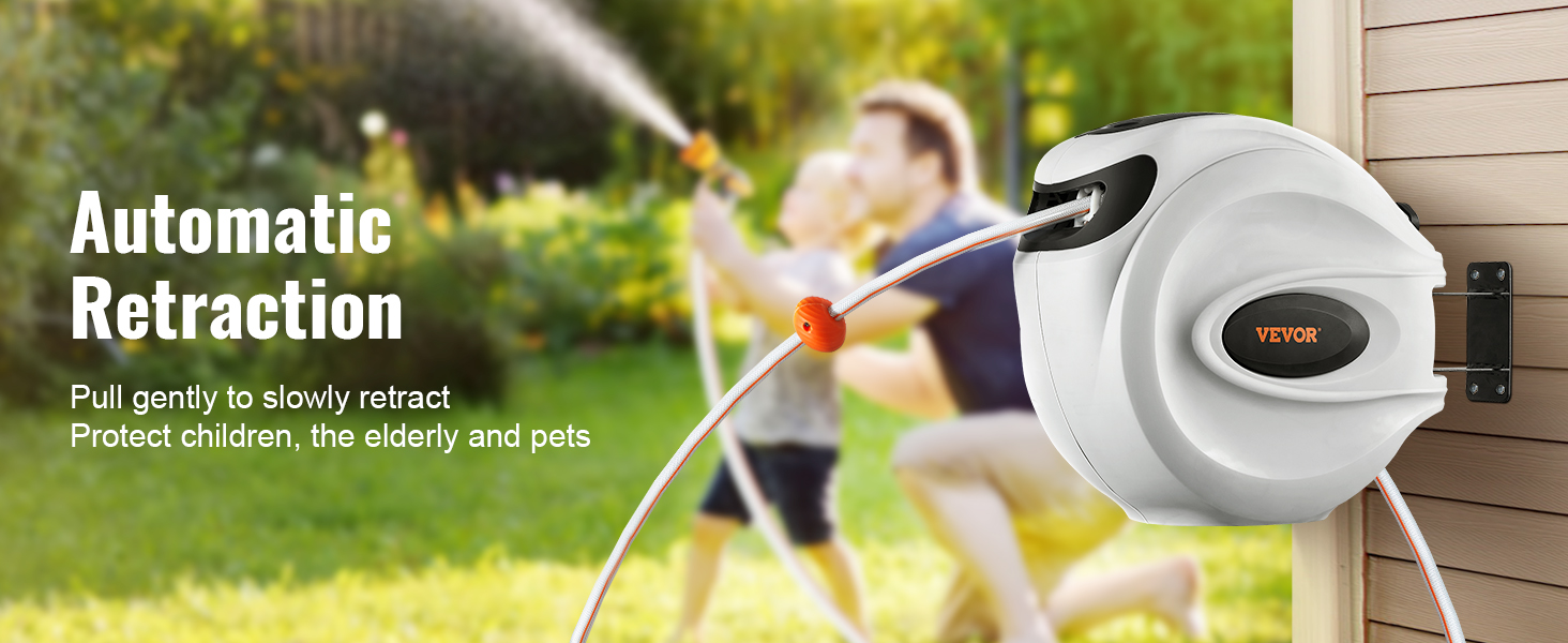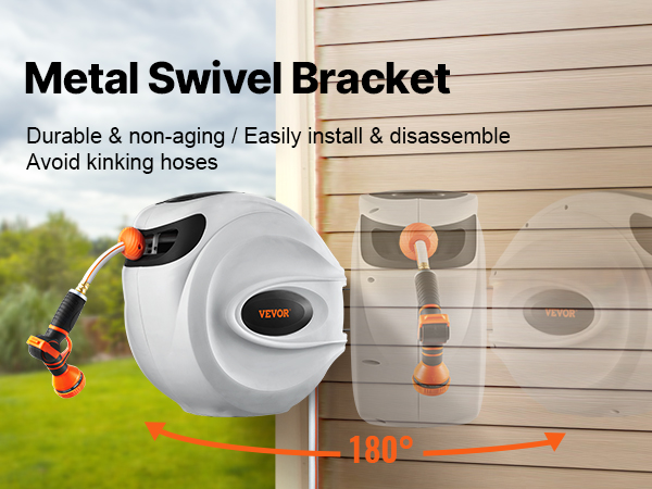VEVOR Retractable Garden Hose Reel, 1/2" x 131.23 ft Wall Mounted Hose Reel, Heavy Duty Garden Hose Reel with 9 Patterns Nozzle, Any Length Lock, Auto-Rewind Slow Return System and 180°Swivel Bracket