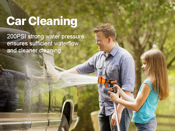 The large-diameter hose ensures ample water flow, making it easy to clean cars and homes