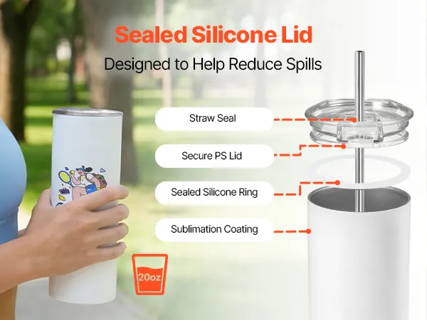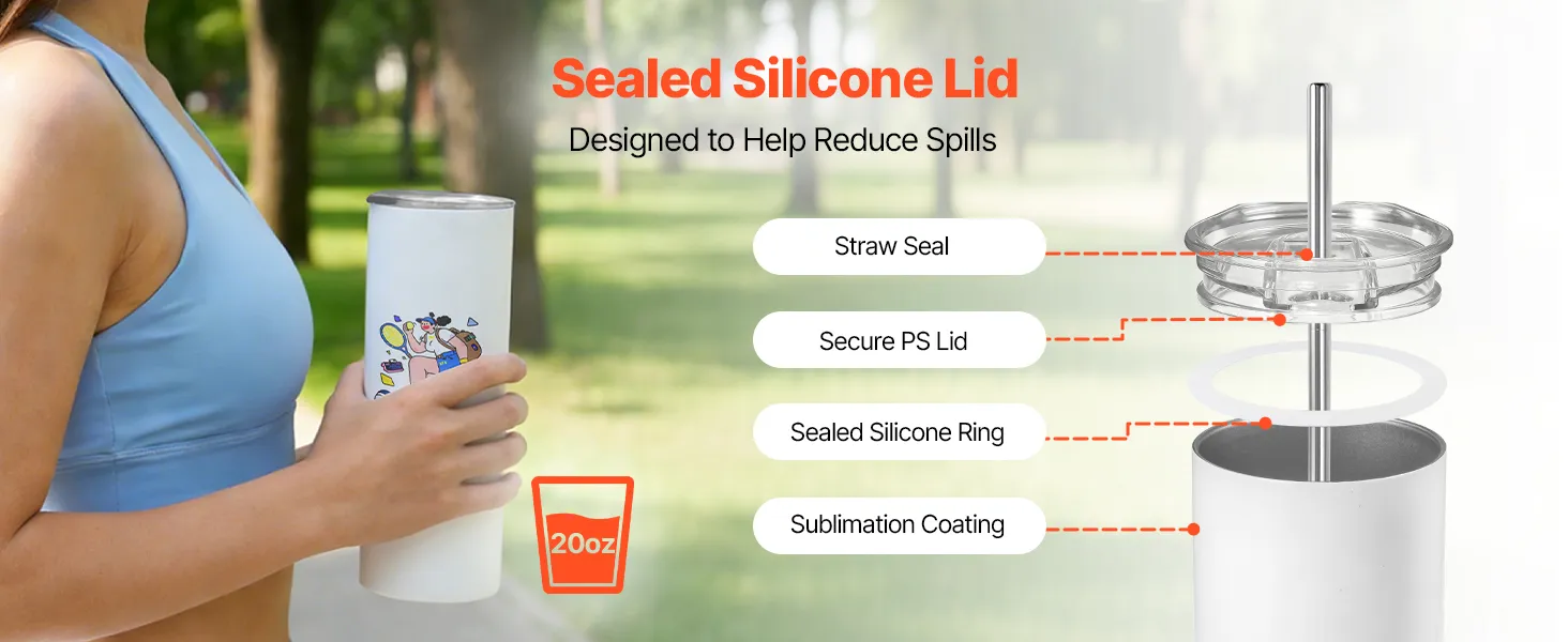 Sealed silicone ring and food-grade PS lid form a reliable leak-resistant barrier. Our sublimation tumblers bulk keeps drinks secure and helps reduce spills wherever your day takes you.