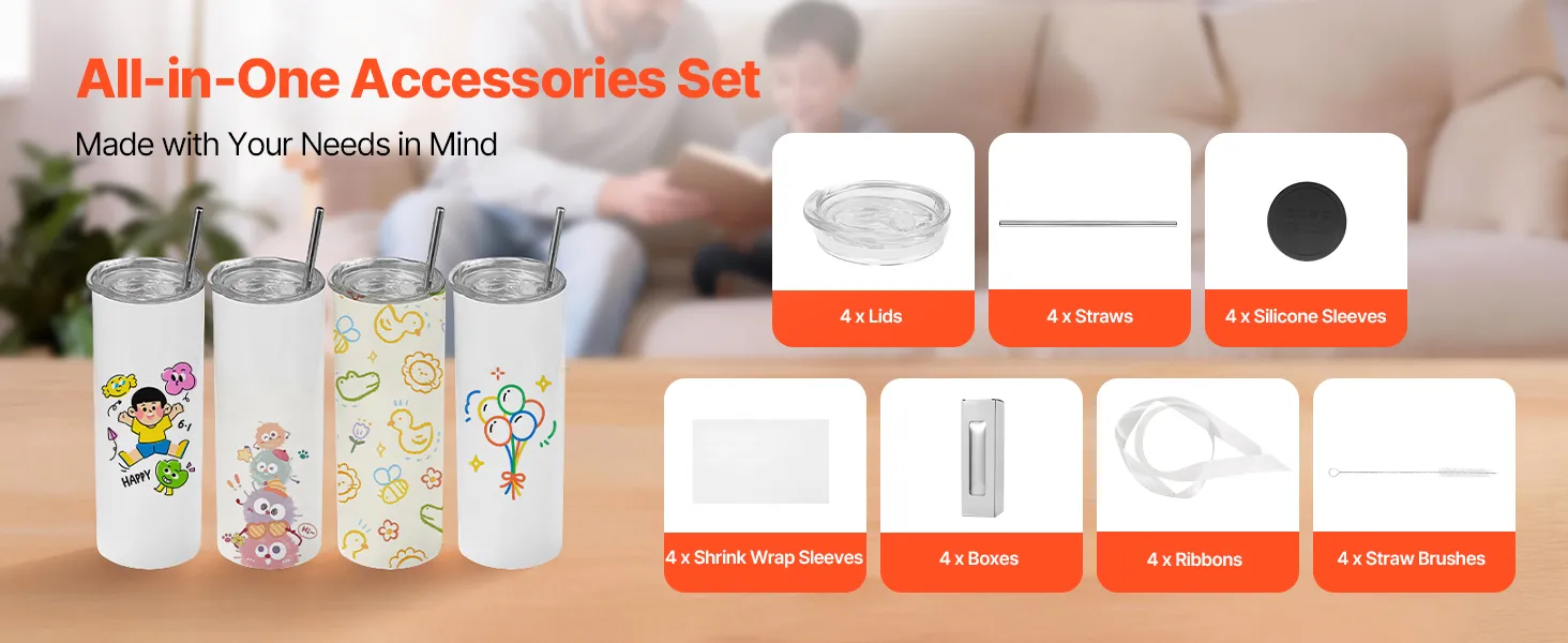 Each accessory adds convenience and functionality to your sublimation cups. Whether creating custom designs or preparing a present set, this collection supports everyday crafting needs.