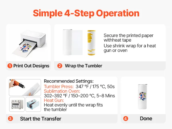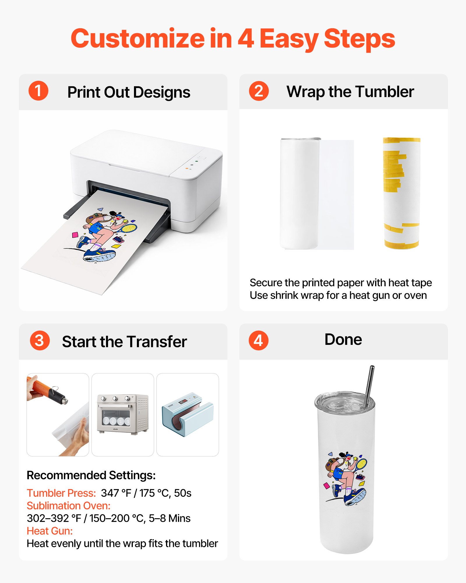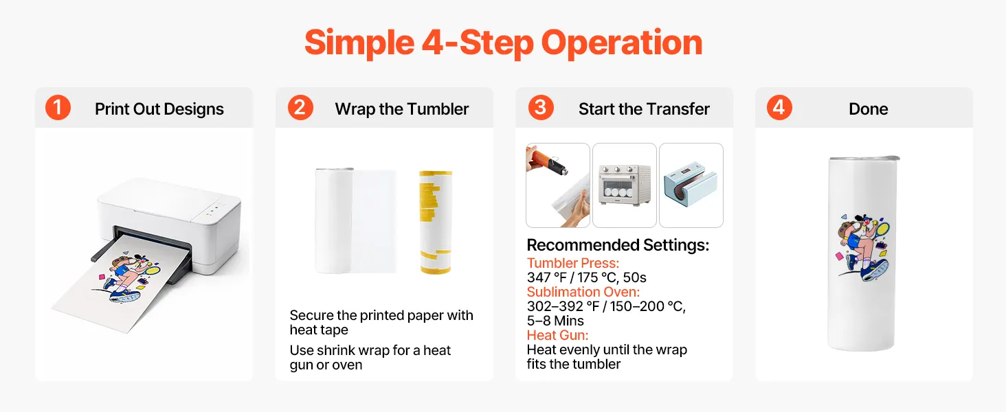 A straightforward 4-step process makes sublimation accessible for hobbyists and creators with stainless steel bulk tumblers.