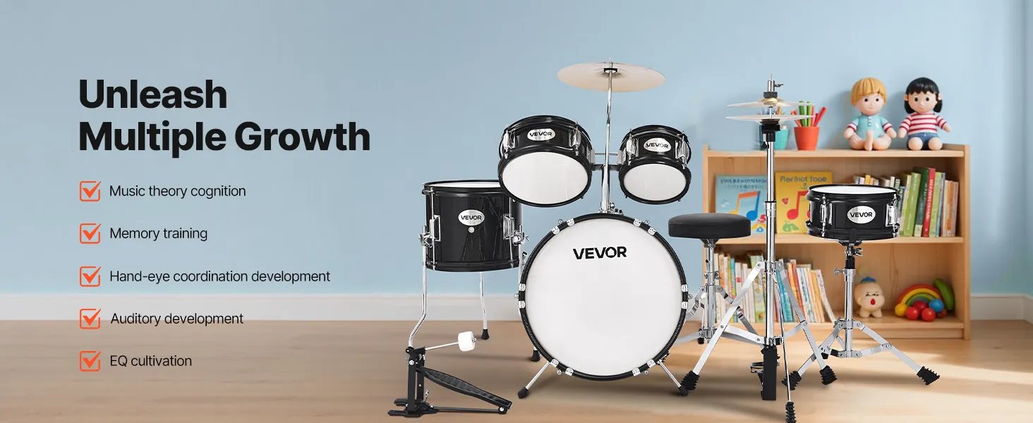 A: This drum set is specifically designed for children and beginners, making it easy for them to start learning and enjoying drumming.