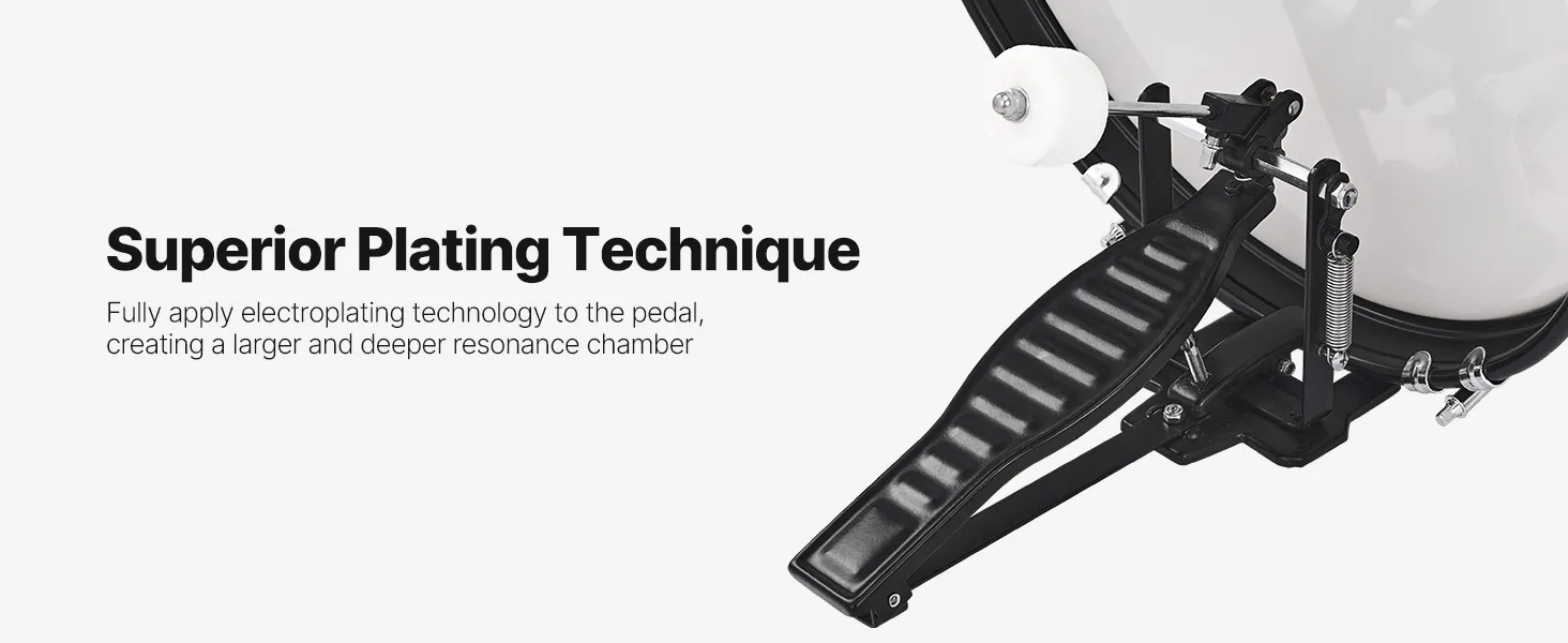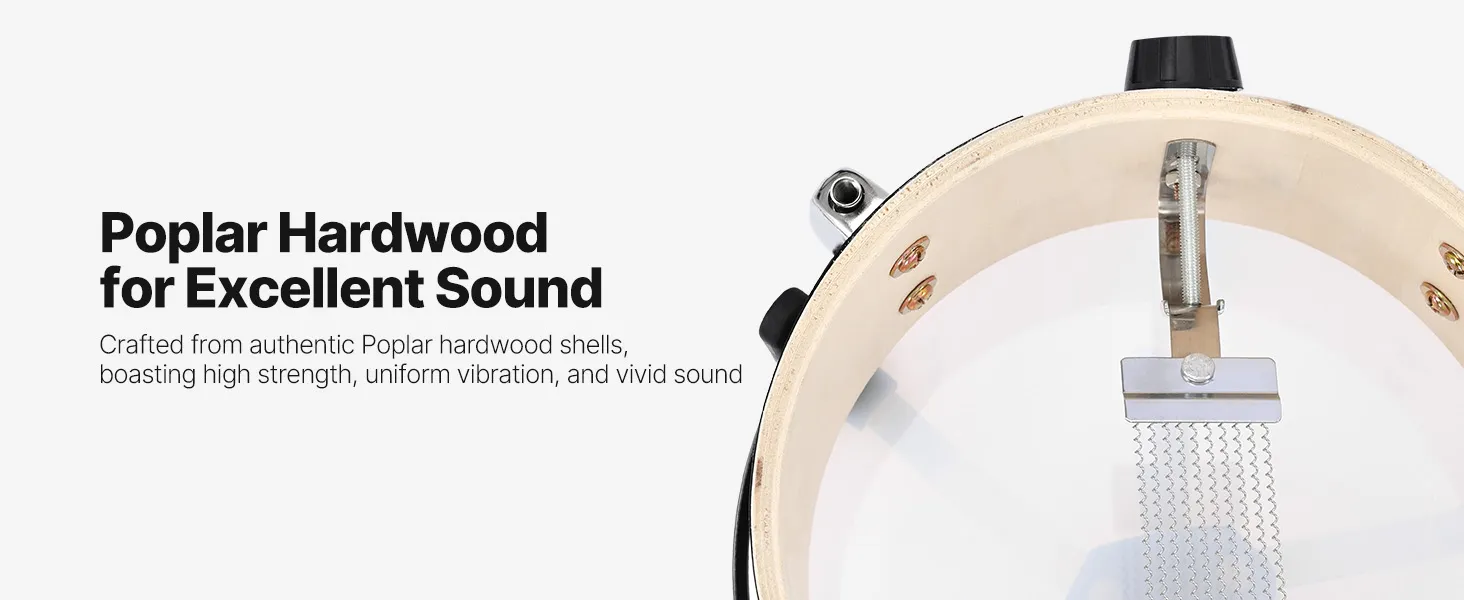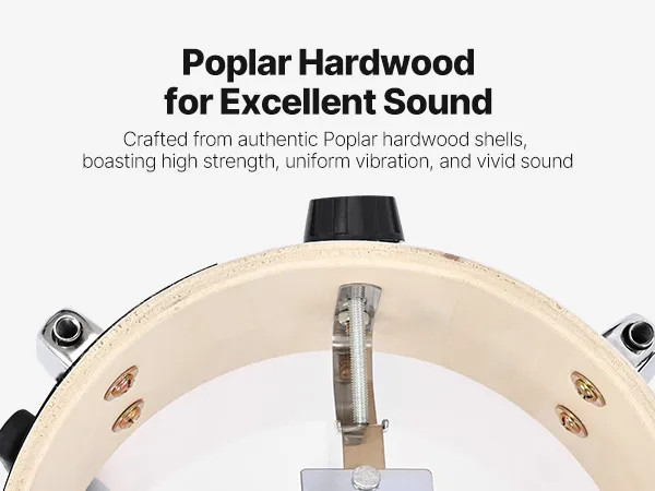 A: The drum shells are made of poplar wood with electrophoresis, painting, and electroplating processes, ensuring both sturdiness and a sleek finish.