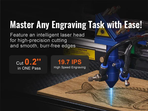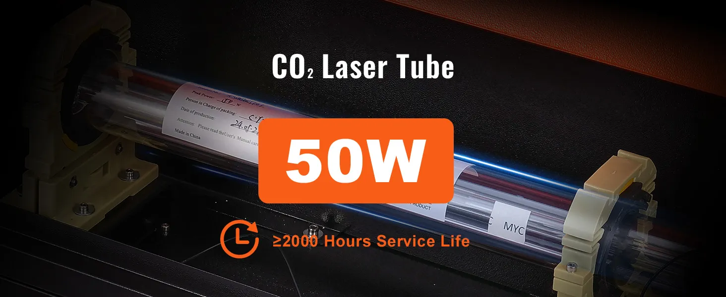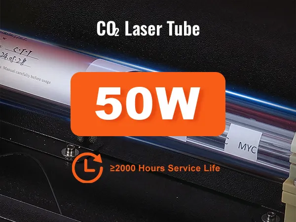 • 50W CO₂ Laser Engraver: Start your laser engraving journey today with our 50W CO₂ laser engraver and bring your ideas to life with extreme speed and precision. This machine cuts through 20 mm in one pass, engraving on wood, acrylic, cardboard, glass, leather, stone, and other 1000+ materials at speeds up to 800 mm/s.