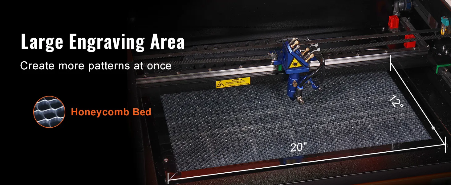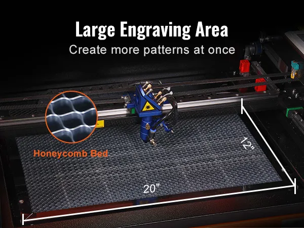 • 300 x 500 mm Work Area: This laser engraver features a spacious 300 x 500 mm/12″ x 20″ work bed, providing 1.6 square feet of the working area to fit all your projects. The bed is designed with a honeycomb structure to ensure high structural stability. Its front and back pass-through doors open up even greater possibilities.